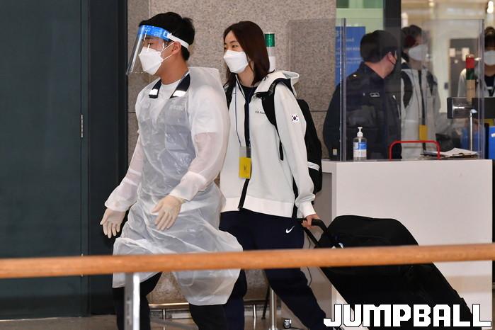 15일 2022 농구월드컵 최종 예선을 펼치고 온 여자농구대표팀이 인천공항 제 1터미널 입국장으로 귀국했다. 여자농구대표팀은 본선에 진출해 9월 호주에서 농구월드컵을 치루게된다. 농구월드컵 최종예선 여자농구대표팀 귀국현장 화보.
