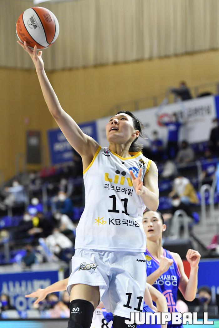 [점프볼=용인/유용우 기자] 09일 용인실내체육관에서 열린 'KB국민은행 Liiv M 2020-2021 여자프로농구' 용인 삼성생명과 청주 KB의 챔피언결정전 2차전, KB 최희진이 레이어업을 올리고 있다.