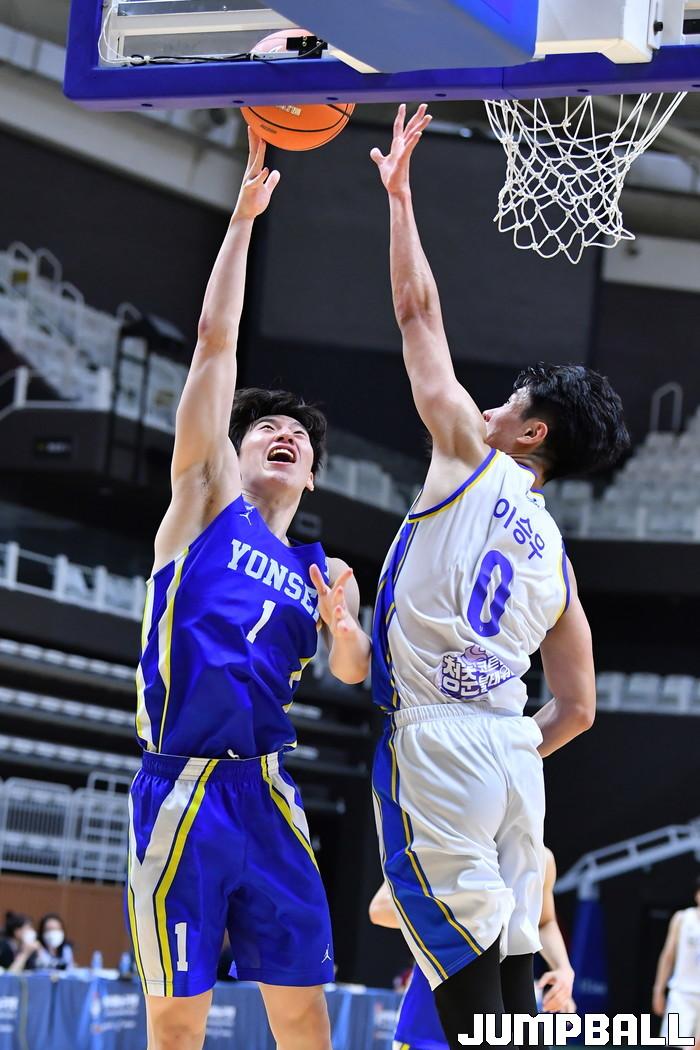 [점프볼=수원/홍기웅 기자] 5일 수원 서수원칠보체육관에서 열린 '2021 KUSF 대학농구 U-리그 3차대회' 연세대와 한양대의 경기. 연세대 이정현이 골밑슛을 시도하고 있다.