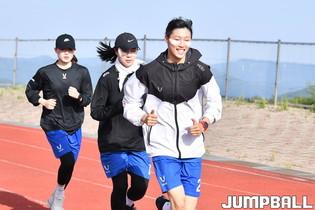 2일 태백선수촌 트랙훈련장에서 여자프로농구 삼성생명이 트랙 훈련을 진행했다. 삼성생명 김익겸 코치가 트랙훈련에 지친 신이슬에게 격려를 해주고 있다.