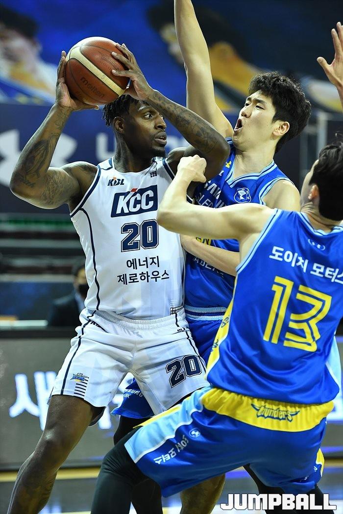 [점프볼=잠실/유용우 기자] 전주 KCC는 8일 잠실실내체육관에서 열린 2020-2021 현대모비스 프로농구 정규리그 서울 삼성과의 5라운드 경기에서 88-83으로 승리했다.