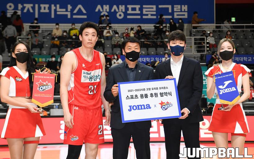 13일 고양체육관에서 열린 2021-2022 KGC인삼공사 정관장 프로농구 고양 오리온과 대구 한국가스공사의 경기, 하프타임때 스포츠 용품 업체 JOMA와 고양 오리온이 협약식을 가졌다.