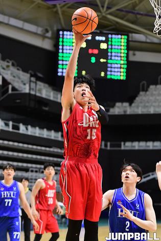 [점프볼=수원/박상혁 기자] 25일 서수원칠보체육관에서 열린 2021 KUSF 대학농구 U-리그 한양대와 단국대 경기, 단국대 표광일이 레이업슛을 시도하고 있다.