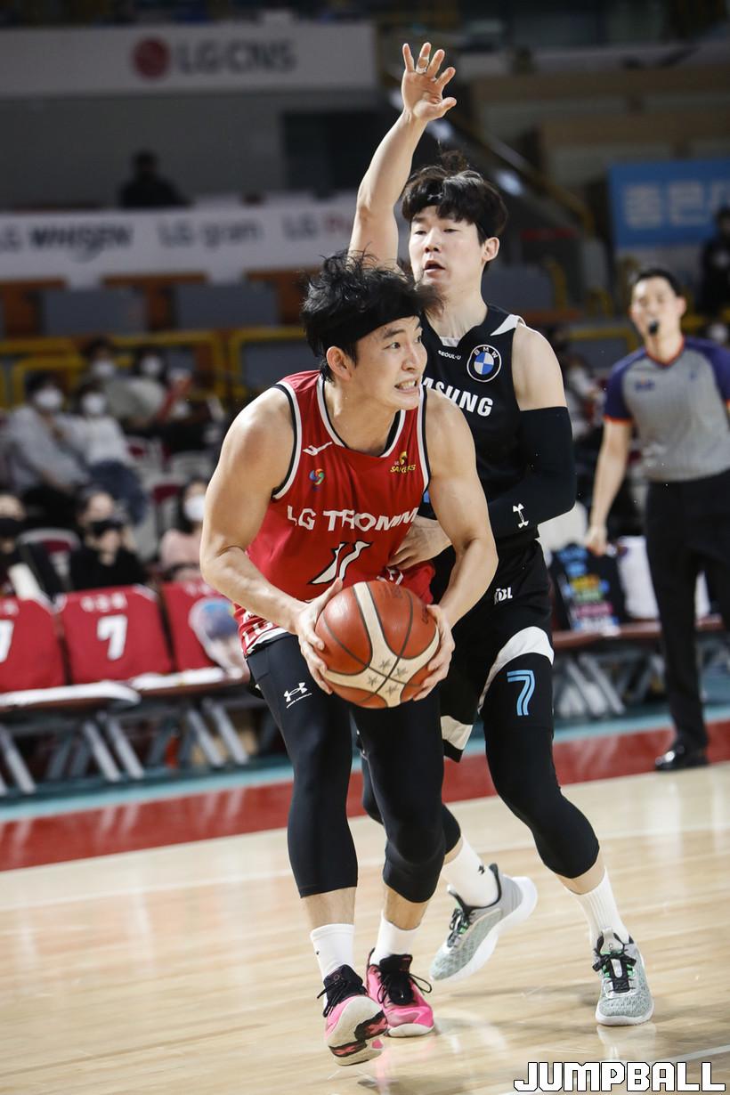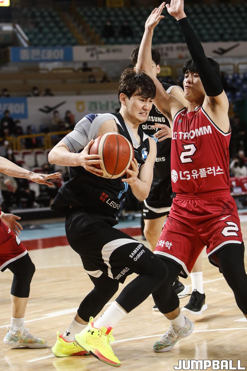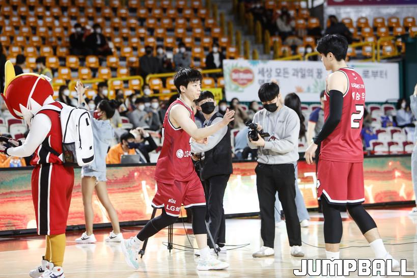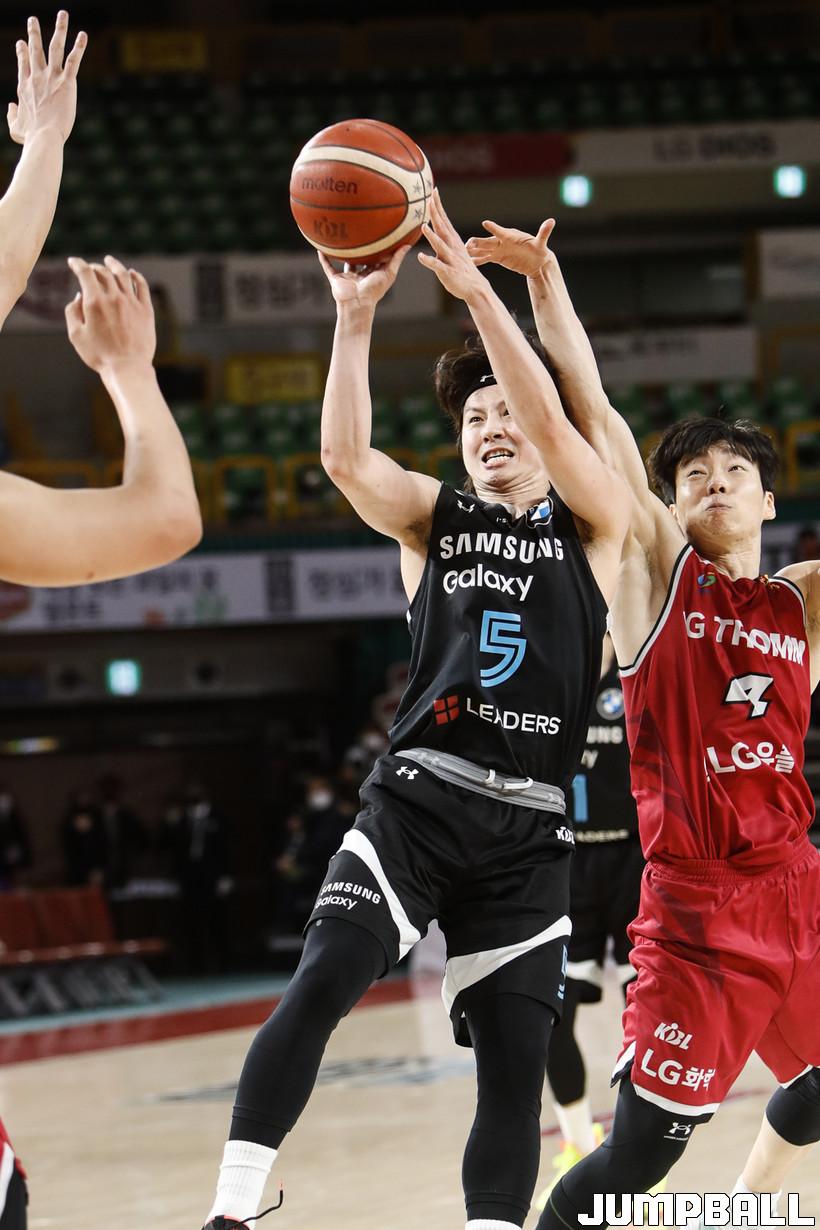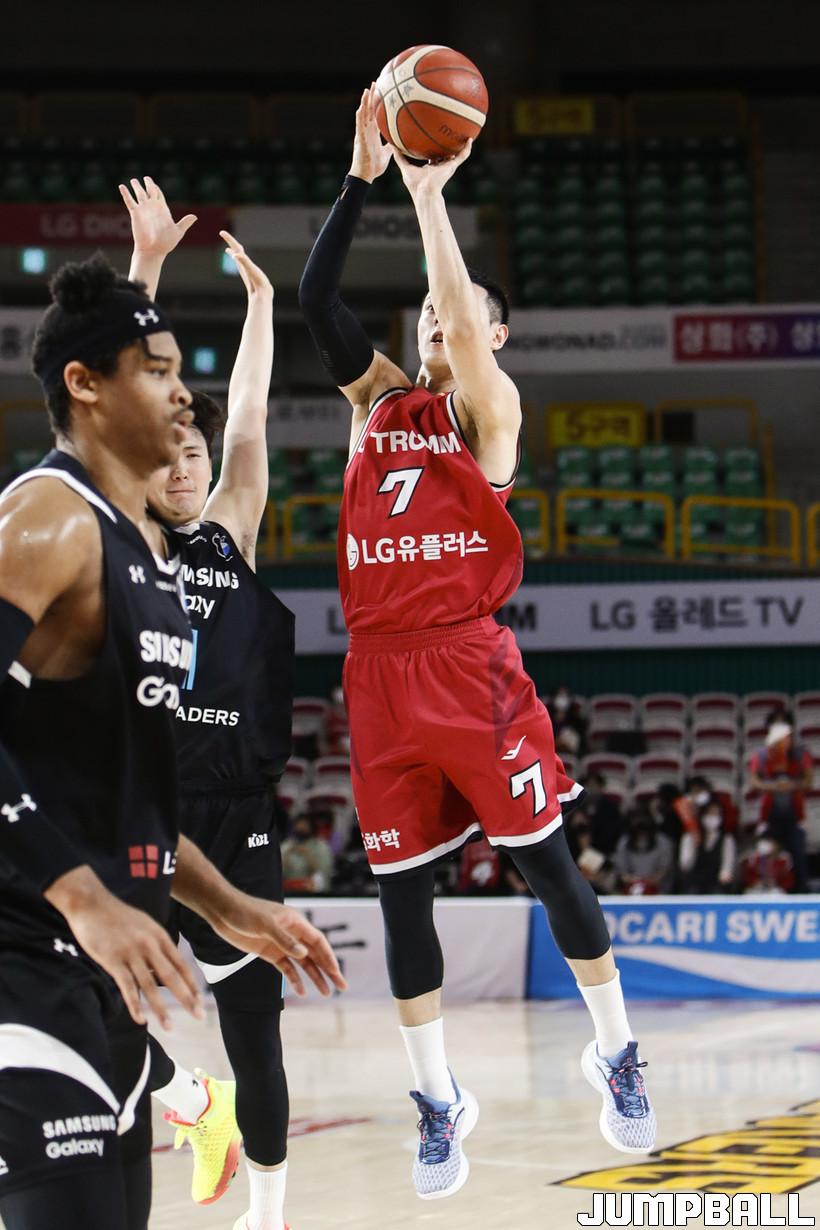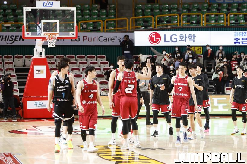 [점프볼=정을호 기자] 18일 창원실내체육관에서 열린 2021-2022 KGC인삼공사 정관장 프로농구 창원 LG와 서울 삼성의 경기, 창원 LG가 서울 삼성에 79-70으로 승리하였다. 창원 LG와 서울 삼성의 경기화보