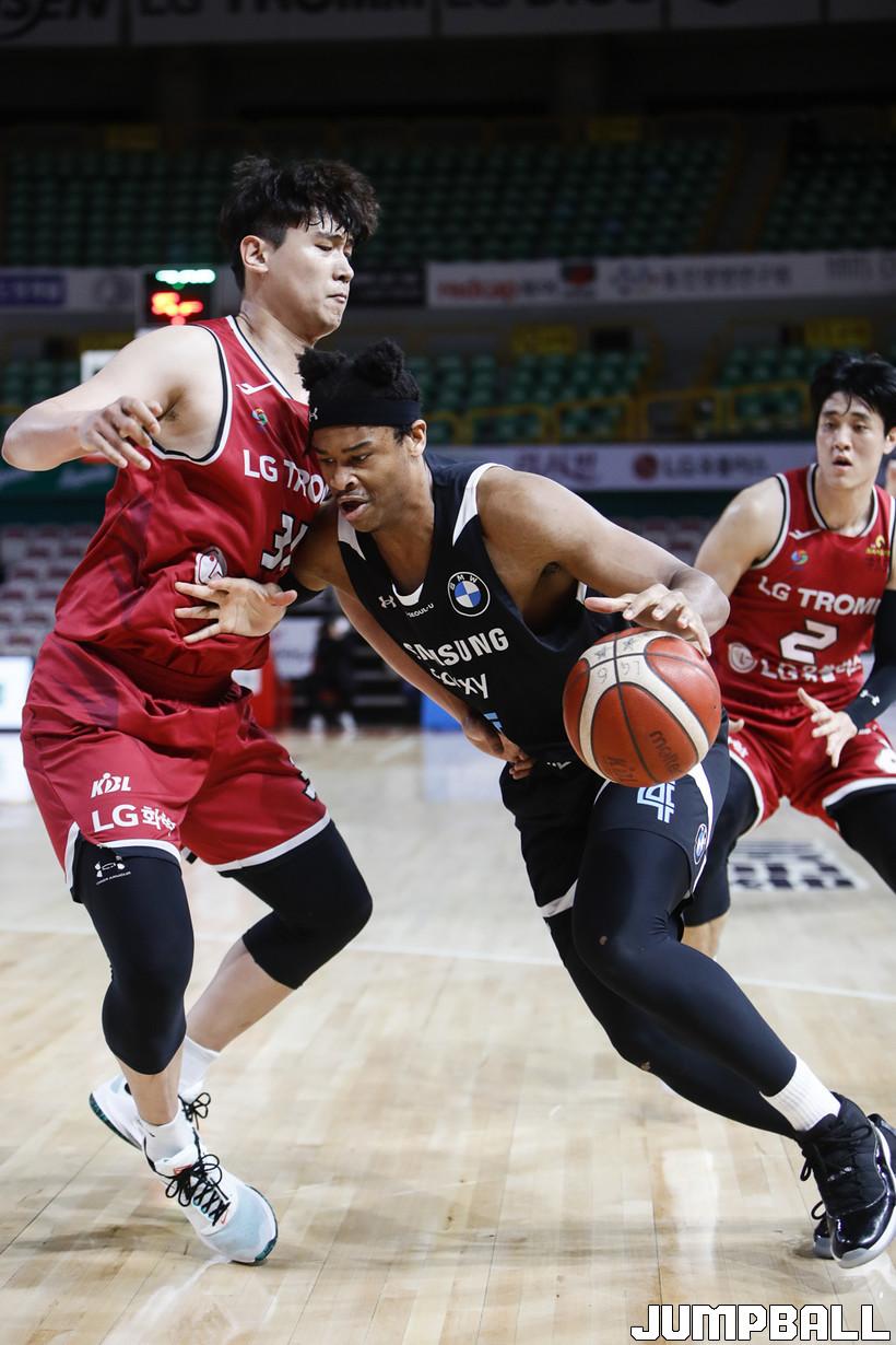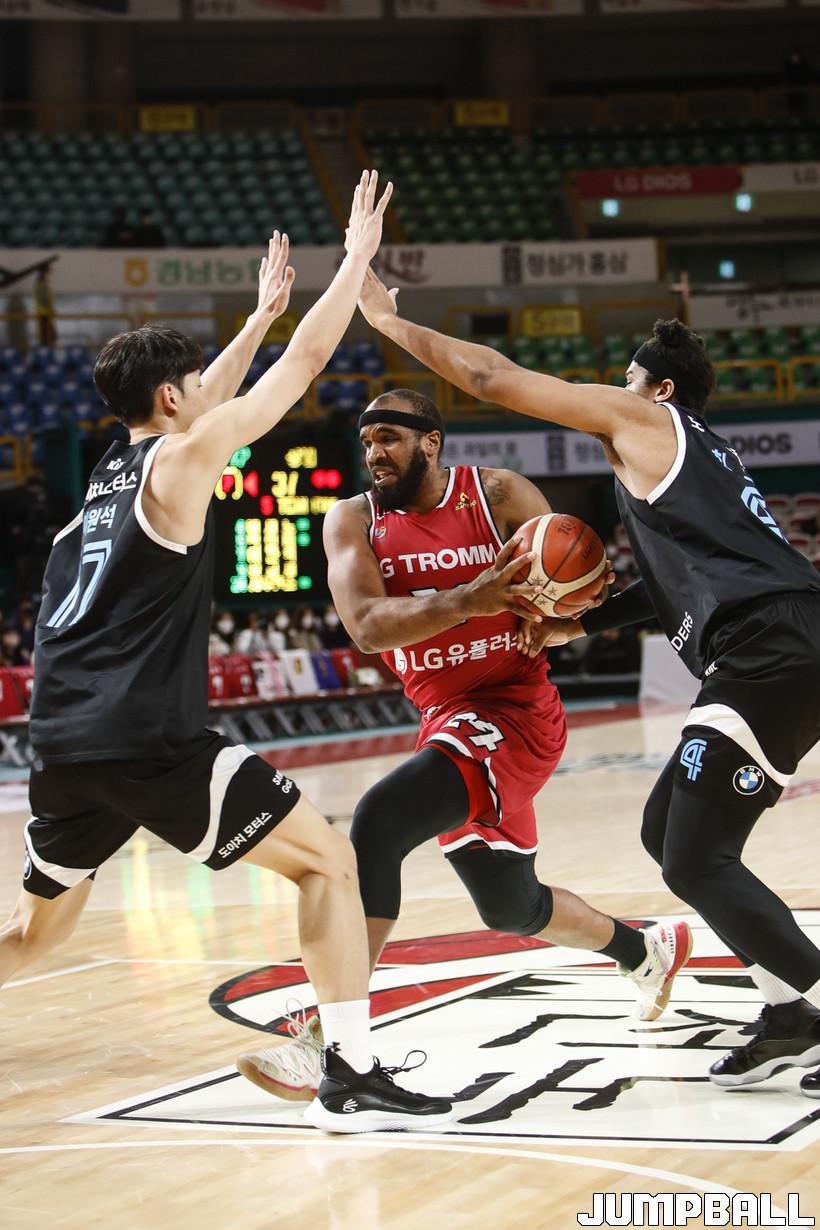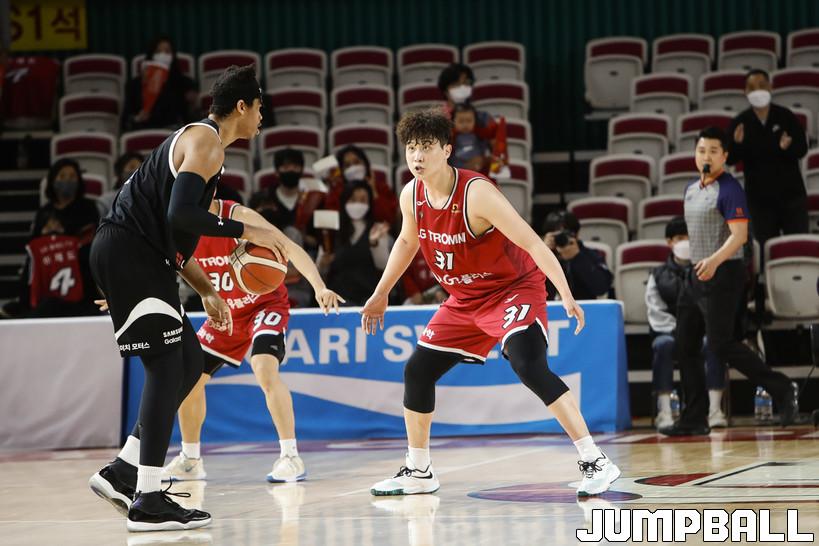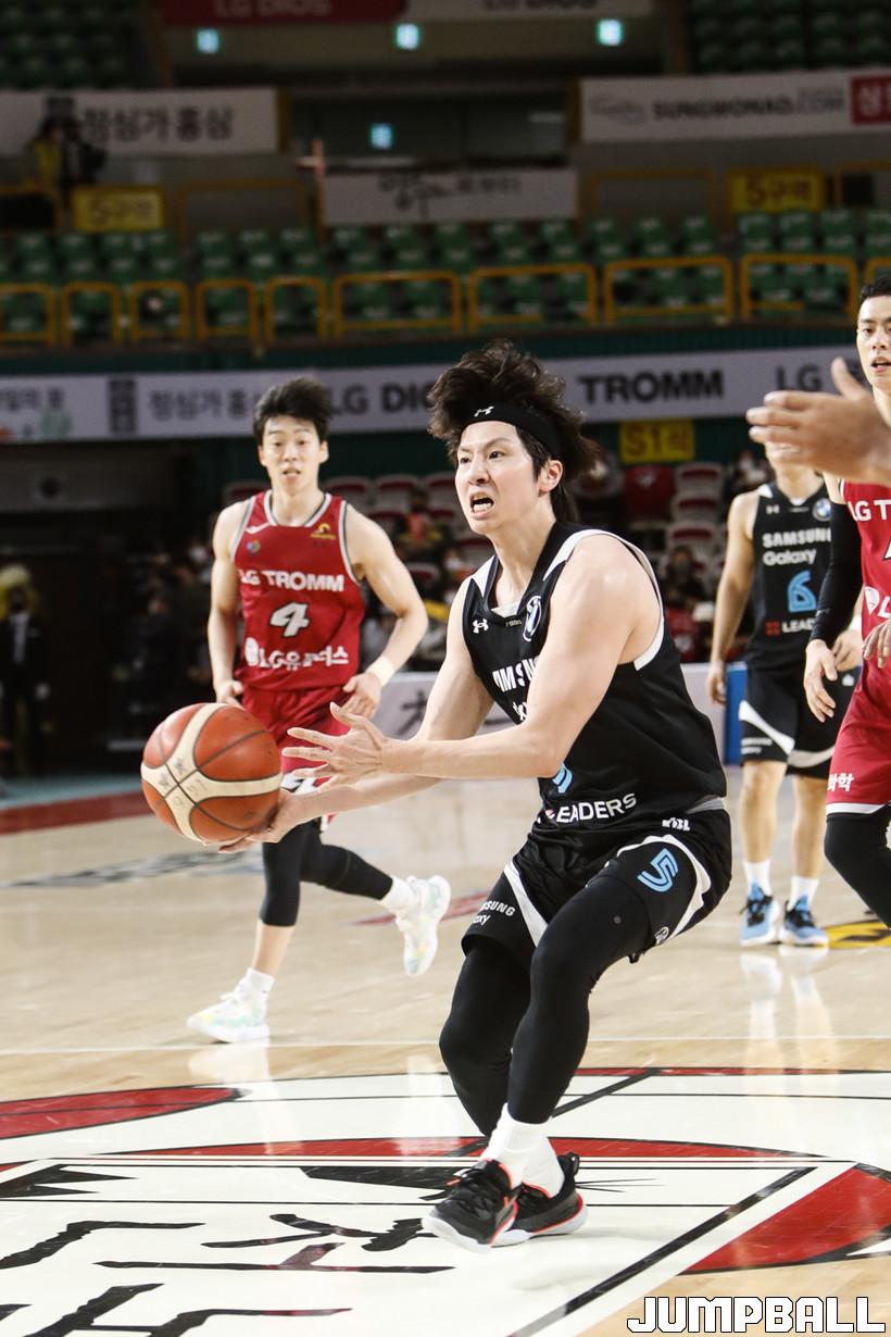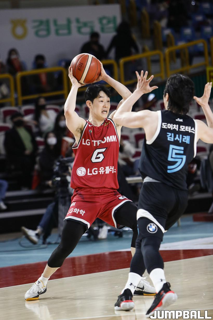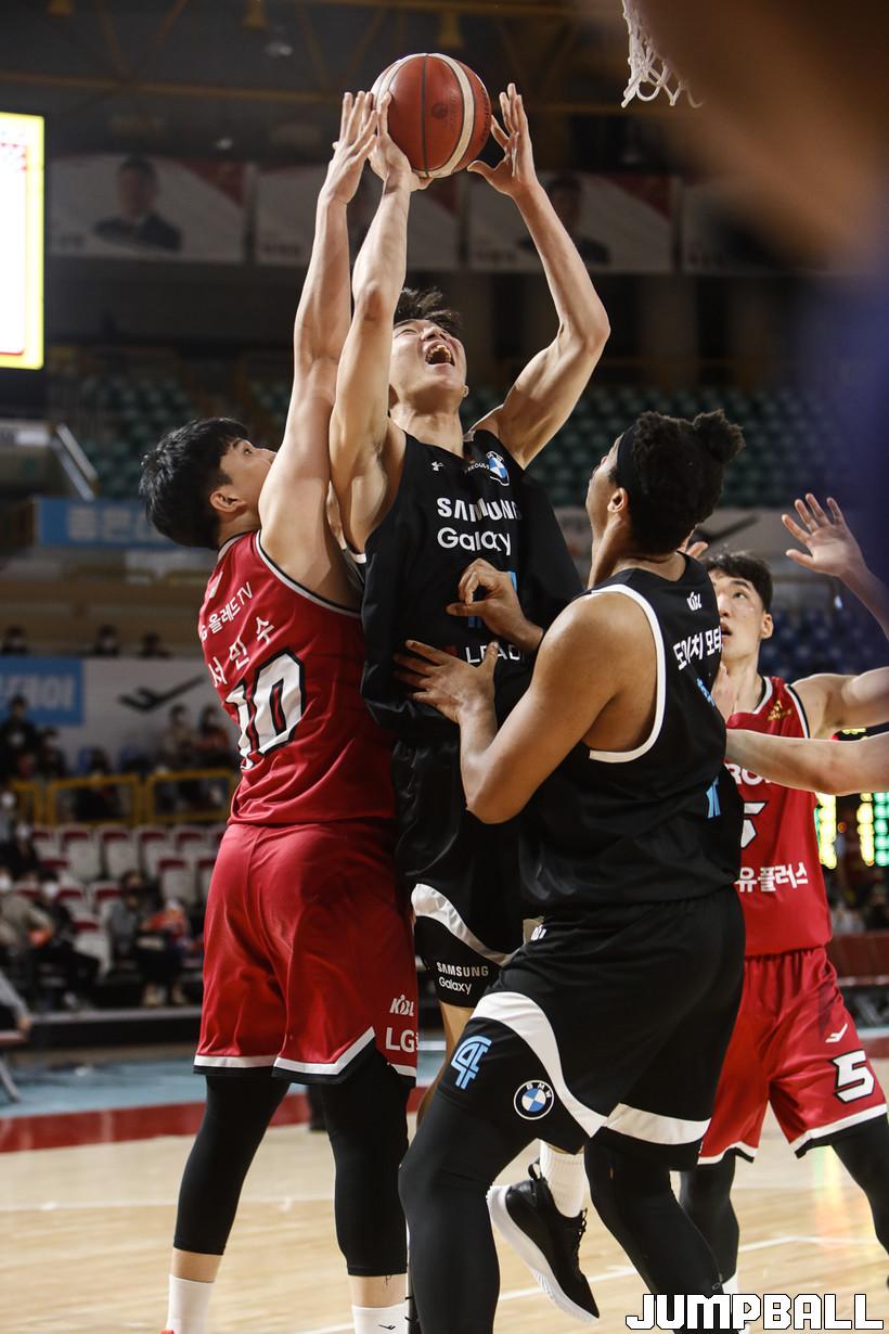 [점프볼=정을호 기자] 18일 창원실내체육관에서 열린 2021-2022 KGC인삼공사 정관장 프로농구 창원 LG와 서울 삼성의 경기, 창원 LG가 서울 삼성에 79-70으로 승리하였다. 창원 LG와 서울 삼성의 경기화보