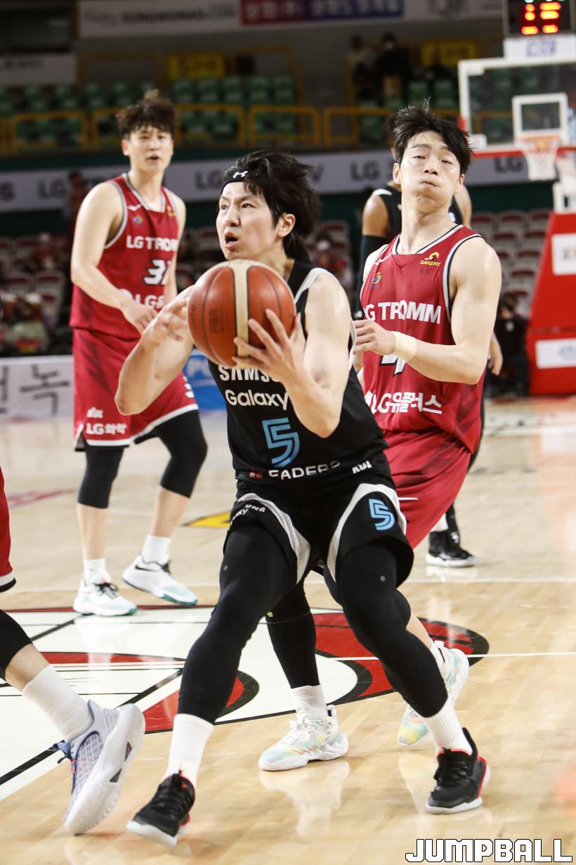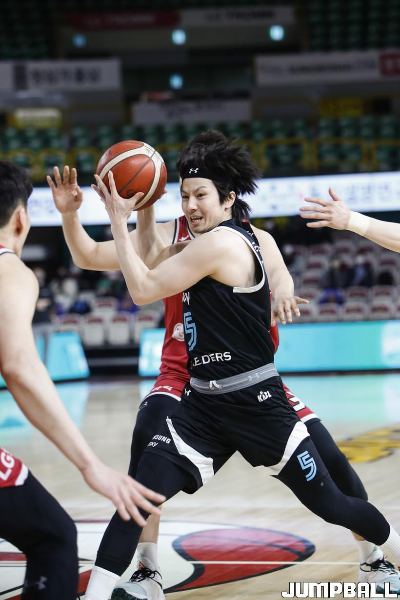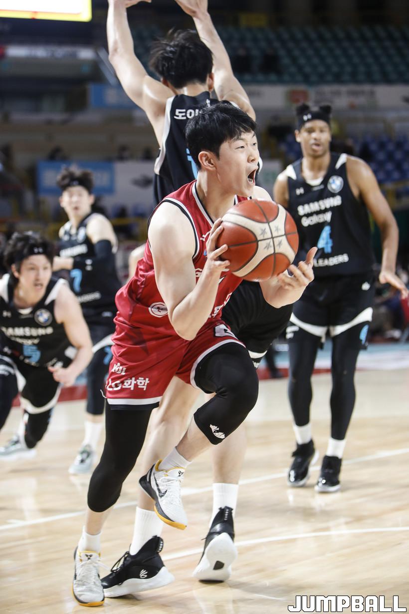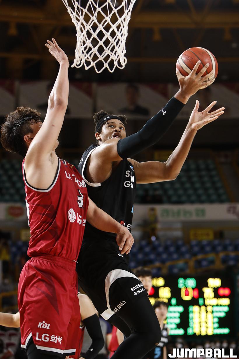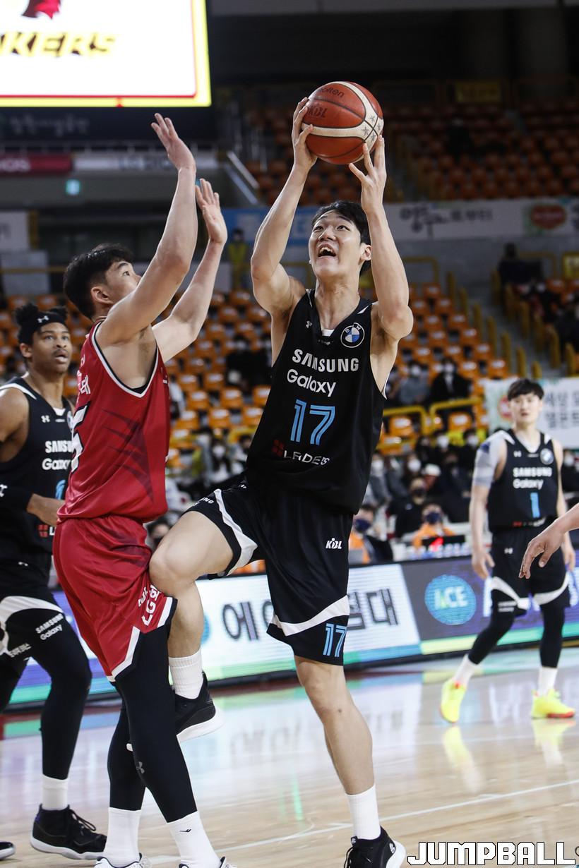 [점프볼=정을호 기자] 18일 창원실내체육관에서 열린 2021-2022 KGC인삼공사 정관장 프로농구 창원 LG와 서울 삼성의 경기, 창원 LG가 서울 삼성에 79-70으로 승리하였다. 창원 LG와 서울 삼성의 경기화보