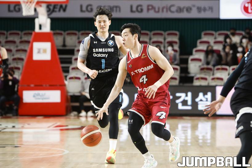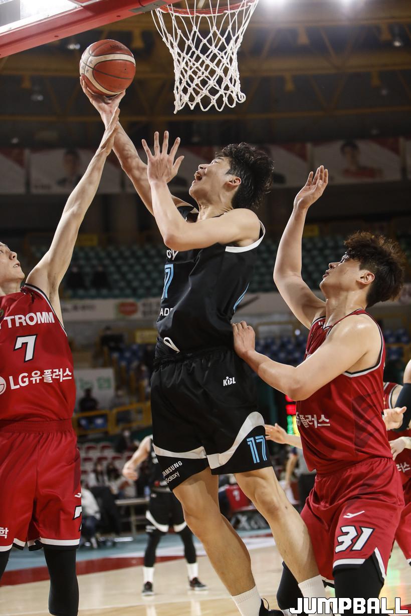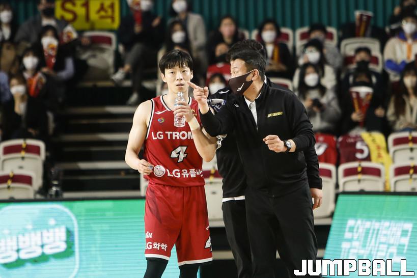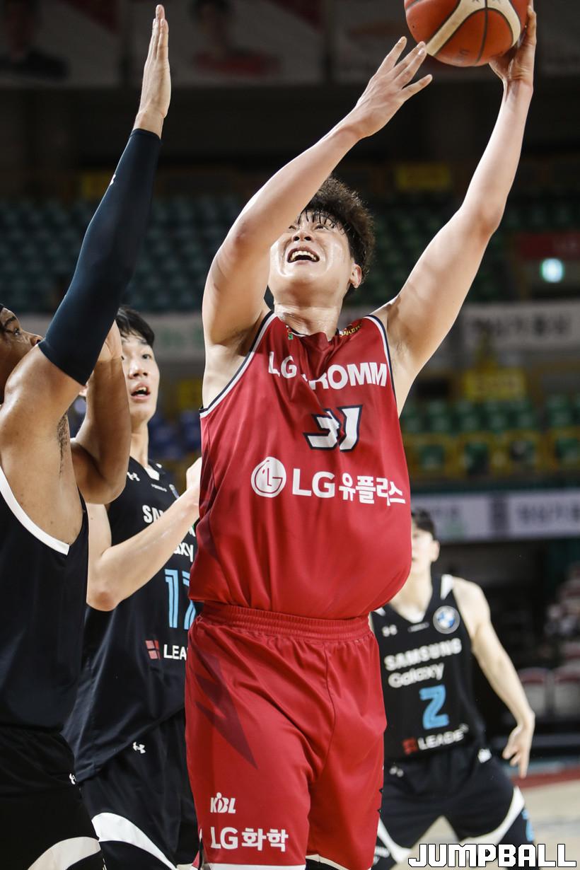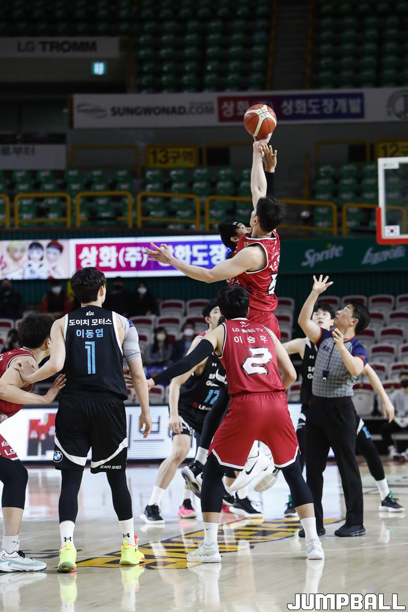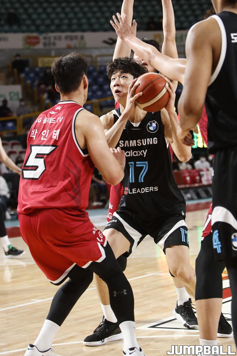 [점프볼=정을호 기자] 18일 창원실내체육관에서 열린 2021-2022 KGC인삼공사 정관장 프로농구 창원 LG와 서울 삼성의 경기, 창원 LG가 서울 삼성에 79-70으로 승리하였다. 창원 LG와 서울 삼성의 경기화보