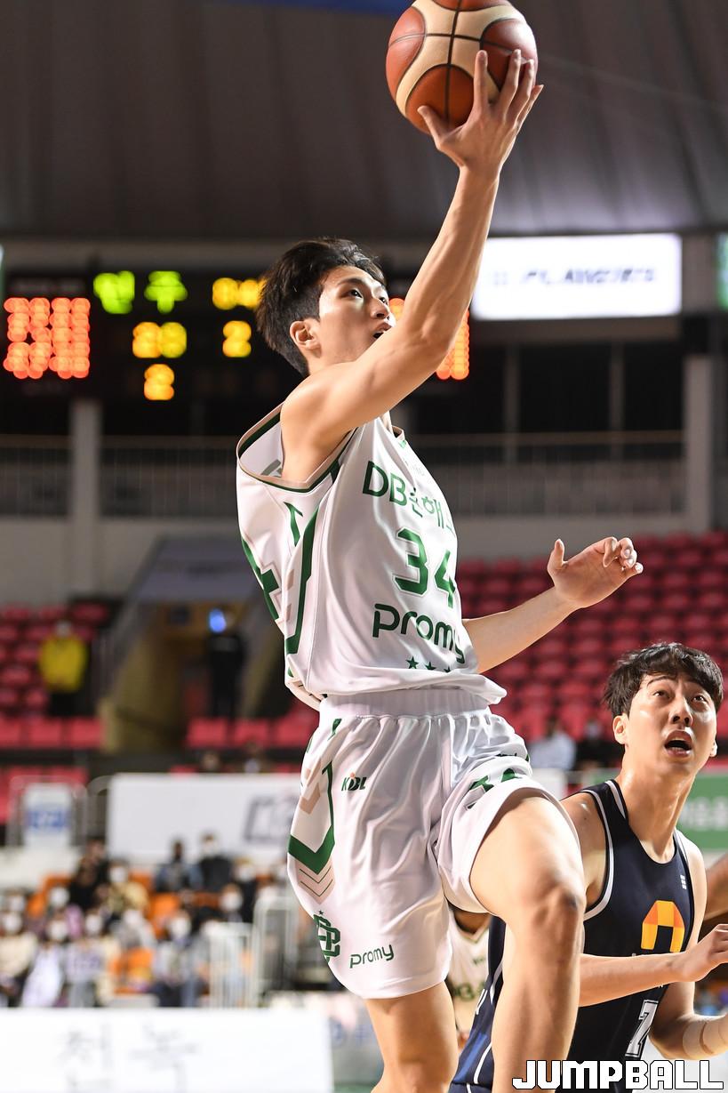 14일 전주실내체육관에서 열린 2021-2022 KGC인삼공사 정관장 프로농구 전주 KCC와 원주 DB의 경기, DB 이준희가 레이업슛을 시도하고 있다.