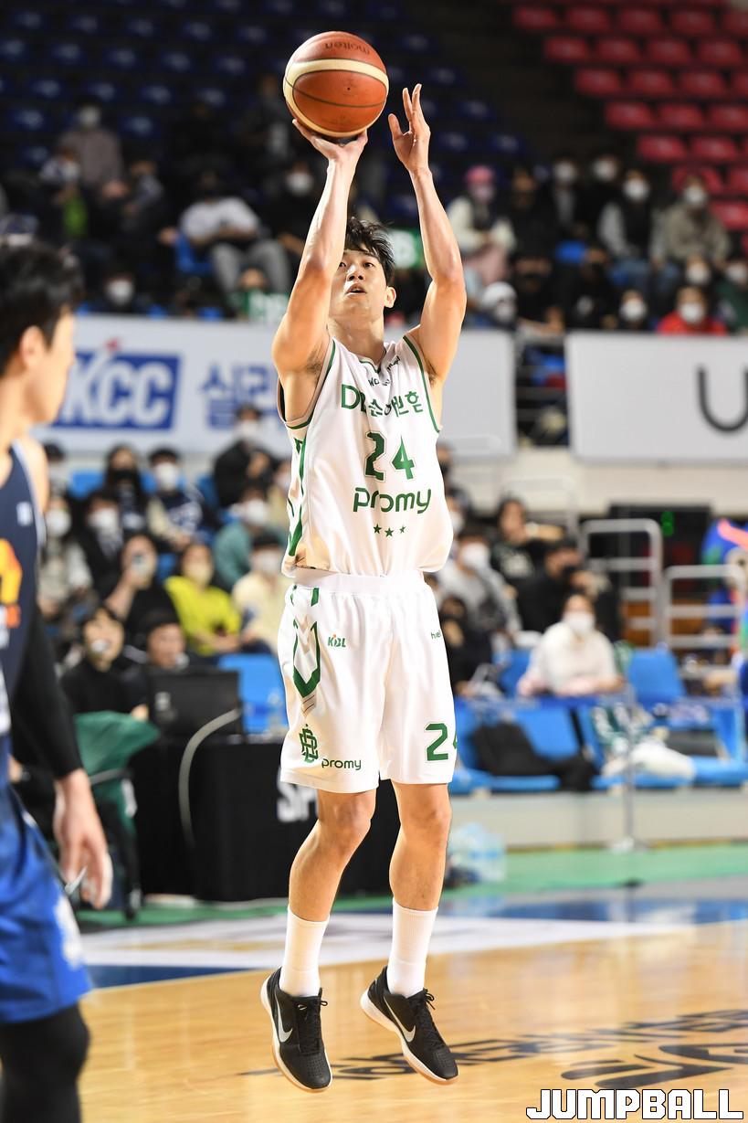 14일 전주실내체육관에서 열린 2021-2022 KGC인삼공사 정관장 프로농구 전주 KCC와 원주 DB의 경기, DB 김영훈이 3점슛을 시도하고 있다.