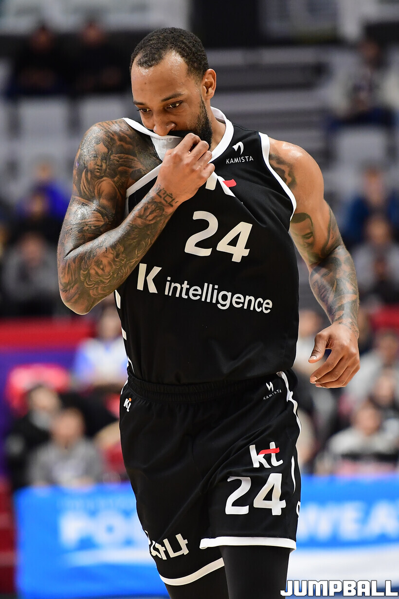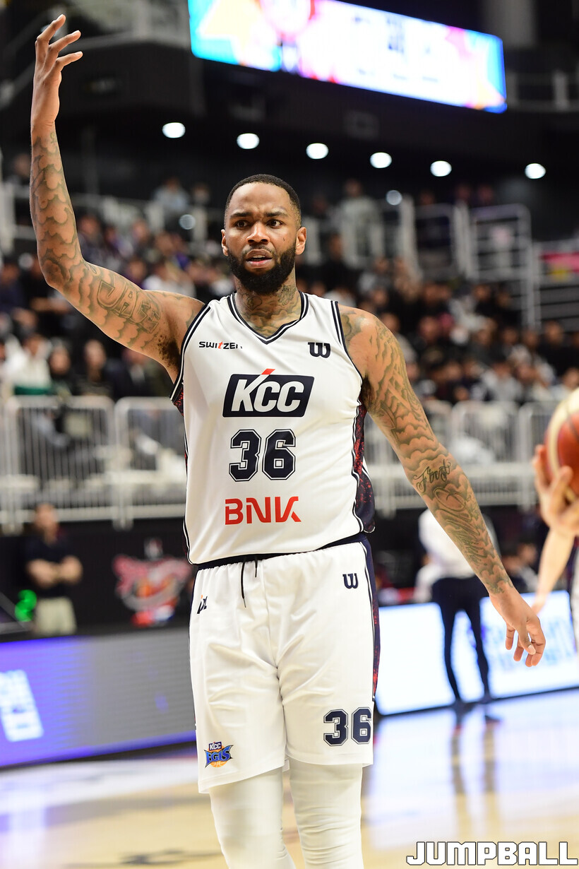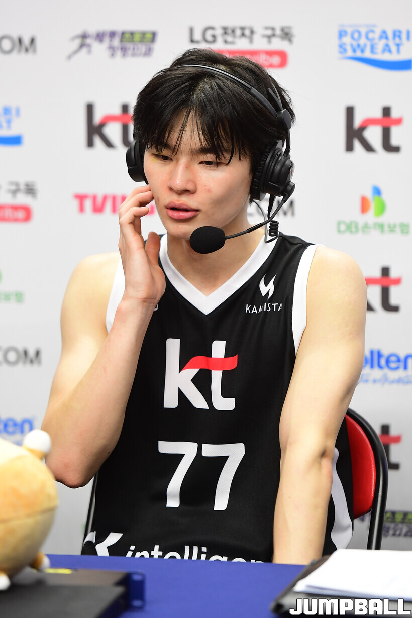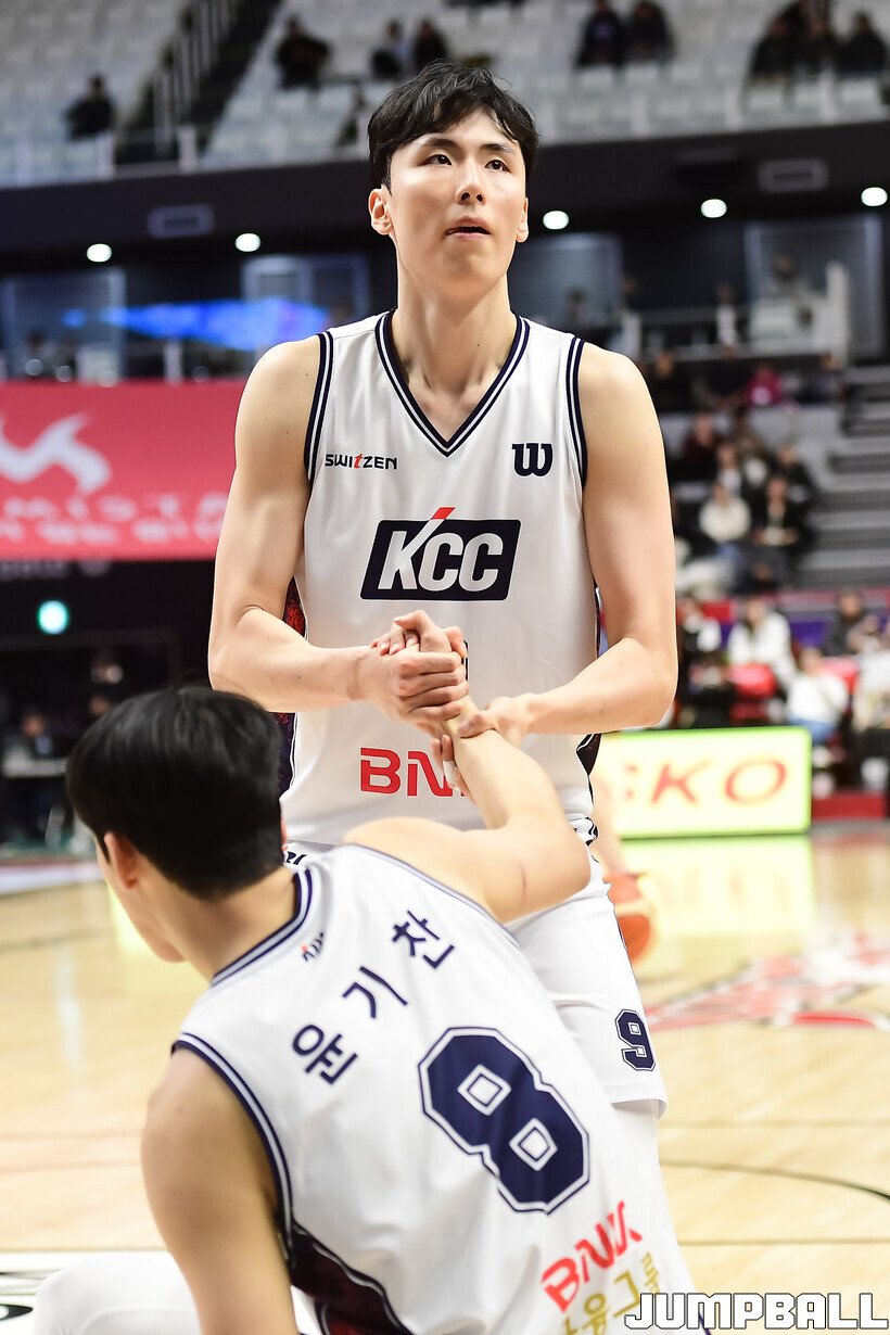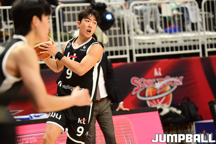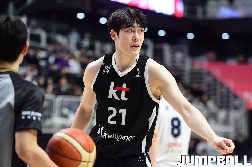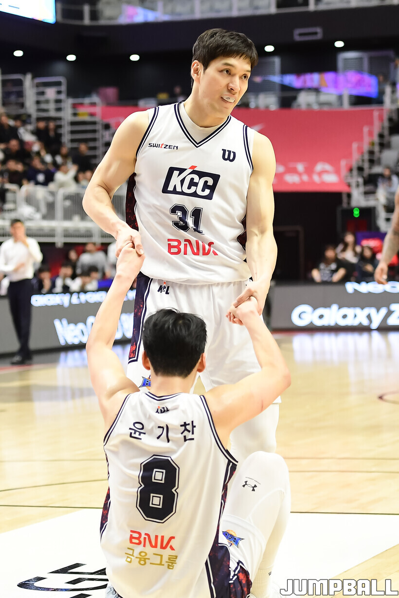 [점프볼=수원/박상혁 기자] 14일 수원 KT 소닉붐 아레나에서 열린 2025-2026 LG전자 프로농구 수원 KT와 부산 KCC의 경기, KT가 데릭 윌리엄스의 32점과 강성욱의 20점 활약으로 숀 롱이 33득점을 기록한 KCC에 107-95로 승리했다.
