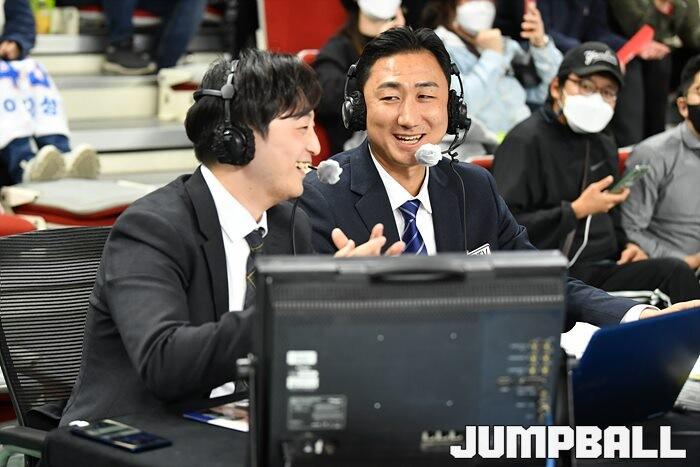 19일 대구실내체육관에서 열린 2022-2023 SKT 에이닷 프로농구 대구 한국가스공사와 원주 DB의 경기, SPOTV 해설위원으로 변신한 정영삼이 첫번째 해설을 진행하고 있다. [점프볼=대구/유용우 기자]