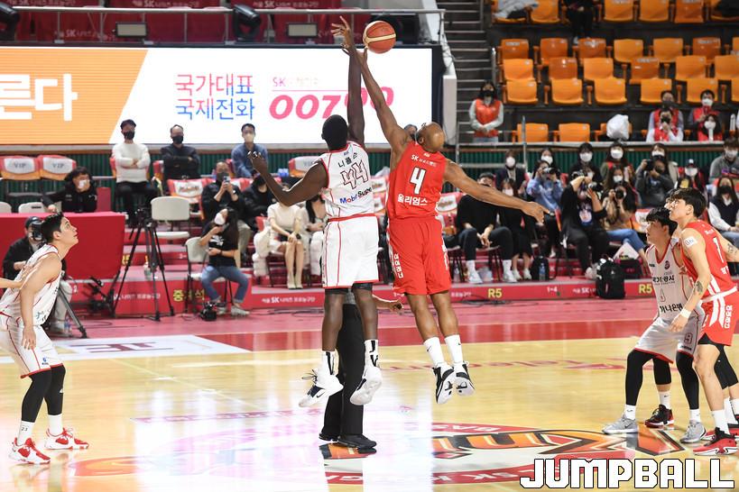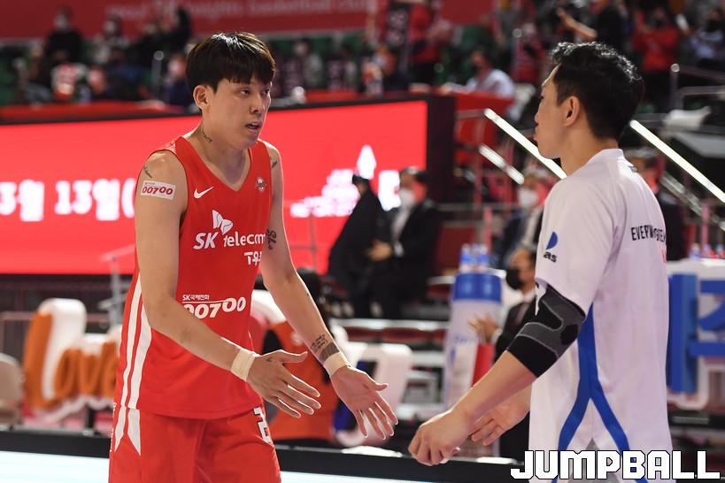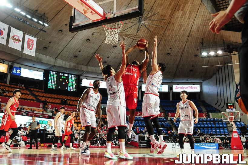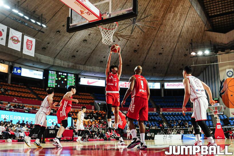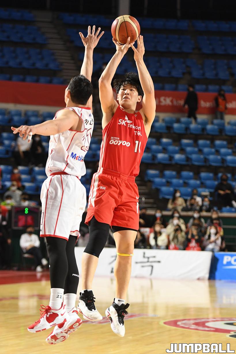 11일 잠실학생체육관에서 열린 2021-2022 KGC인삼공사 정관장 프로농구 서울 SK와 대구 한국가스공사의 경기, SK가 한국가스공사에 97-86으로 승리했다. SK와 한국가스공사 경기 화보.