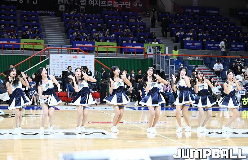 [점프볼=부산/문복주 기자] 20일 부산사직체육관에서 열린 2025~2026 LG전자 프로농구 부산 KCC와 고양 소노의 경기전 KCC이지스 치어리더가 오프닝 공연을 했다.