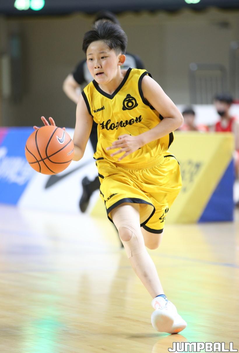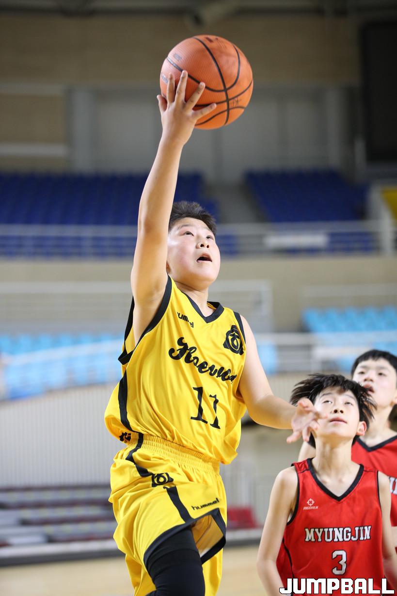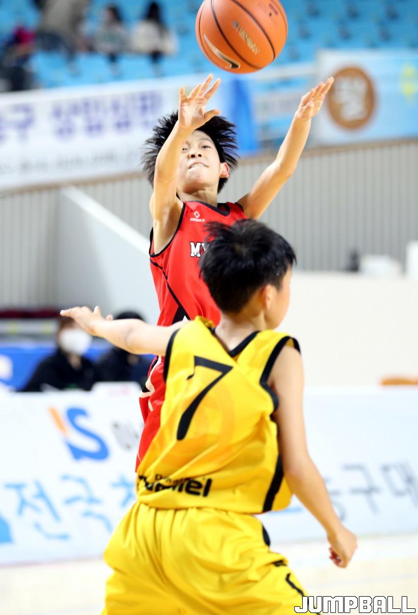 1일 김천실내체육관에서 열린 제 21회 협회장배 전국초등농구대회 3일차 회원초교와 명진초교의 경기 화보.