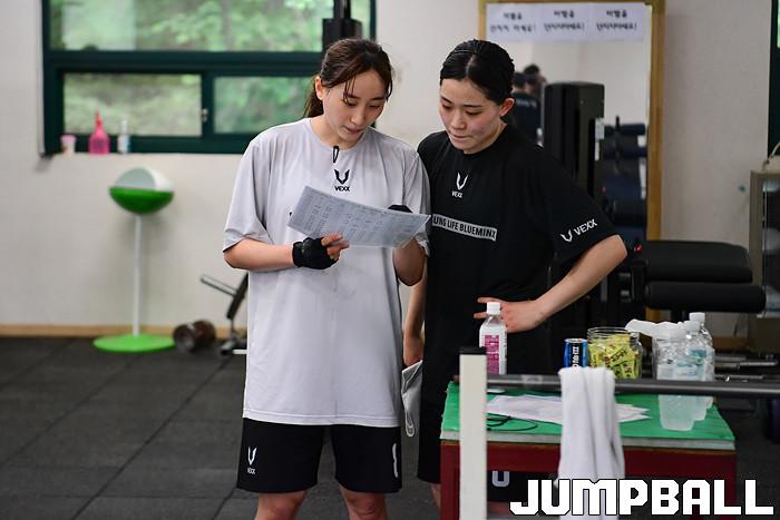 [점프볼=태백/박상혁 기자] 8일 강원도 태백시 고원체육관에서 여자프로농구 삼성생명 선수단이 비시즌 전지훈련을 가졌다. 삼성생명 이주연과 조수아가 훈련 기록지를 살펴보고 있다.