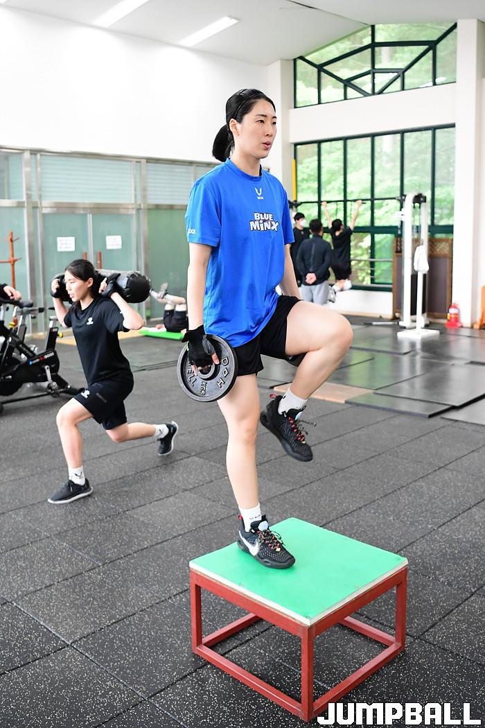 [점프볼=태백/박상혁 기자] 8일 강원도 태백시 고원체육관에서 여자프로농구 삼성생명 선수단이 비시즌 전지훈련을 가졌다. 삼성생명 김한비가 하체 훈련을 하고 있다.