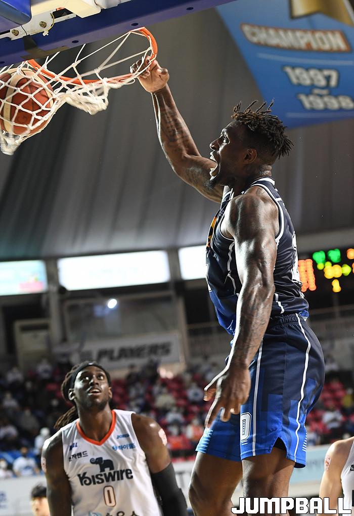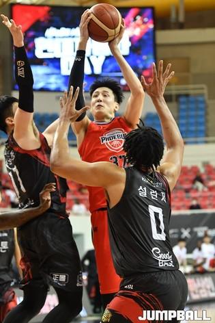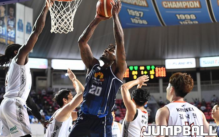 KCC의 라건아가 20-20(22득점 25리바운드 2블록)으로 골밑을 폭격한 가운데 김지완(18득점 3어시스트), 이정현(13득점 4리바운드), 유현준(12득점 3어시스트)도 주축의 몫을 다했다. 전자랜드는 조나단 모트리(23득점 4리바운드 2어시스트), 이대헌(18득점 2리바운드), 차바위(13득점 9리바운드)까지 분전했지만, 리바운드 열세(27-40)의 벽을 넘지 못했다.