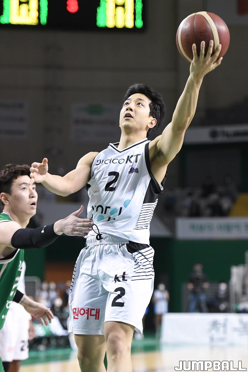 10일 원주종합체육관에서 열린 2021-2022 KGC인삼공사 정관장 프로농구 원주 DB와 수원 KT의 경기, KT 허훈이 레이업슛을 시도하고 있다.