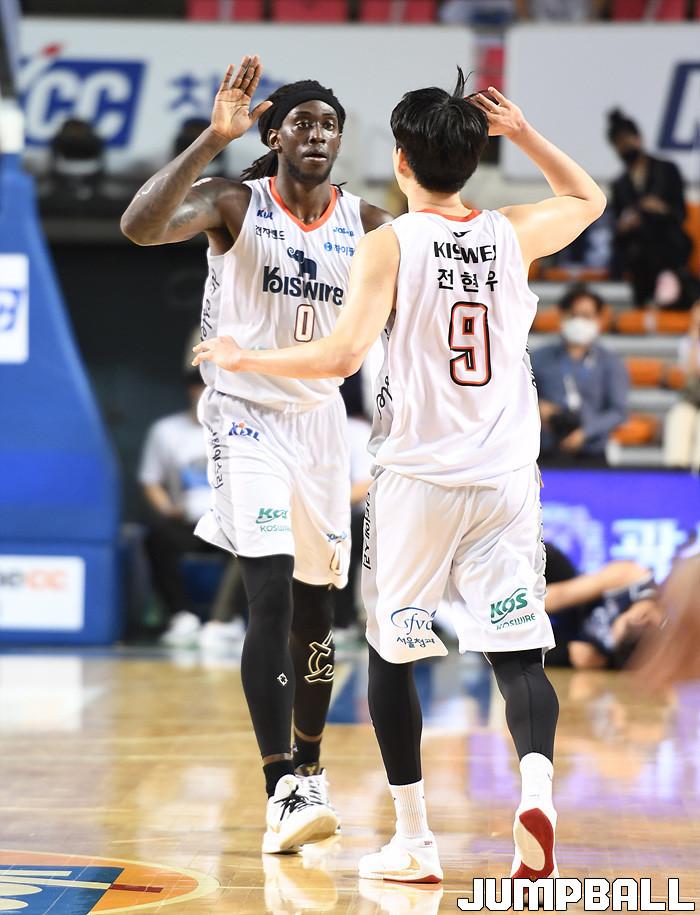 KCC의 라건아가 23득점 19리바운드로 골밑을 폭격한 가운데, 정창영도 18득점 5리바운드로 승리를 이끌었다. 이정현 역시 13득점 4리바운드 6어시스트로 주축의 몫을 다해냈다. 전자랜드는 조나단 모트리(24득점 12리바운드 5어시스트 3블록)와 전현우(16득점)가 분전했지만, 맹추격에도 4쿼터 승부처를 이겨내지 못했다.