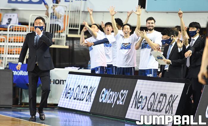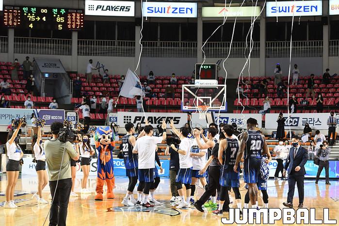 [점프볼=전주/문복주 기자] 전주 KCC는 21일 전주실내체육관에서 열린 2020-2021 현대모비스 프로농구 인천 전자랜드와의 4강 플레이오프 1차전에서 85-75로 이겼다.
