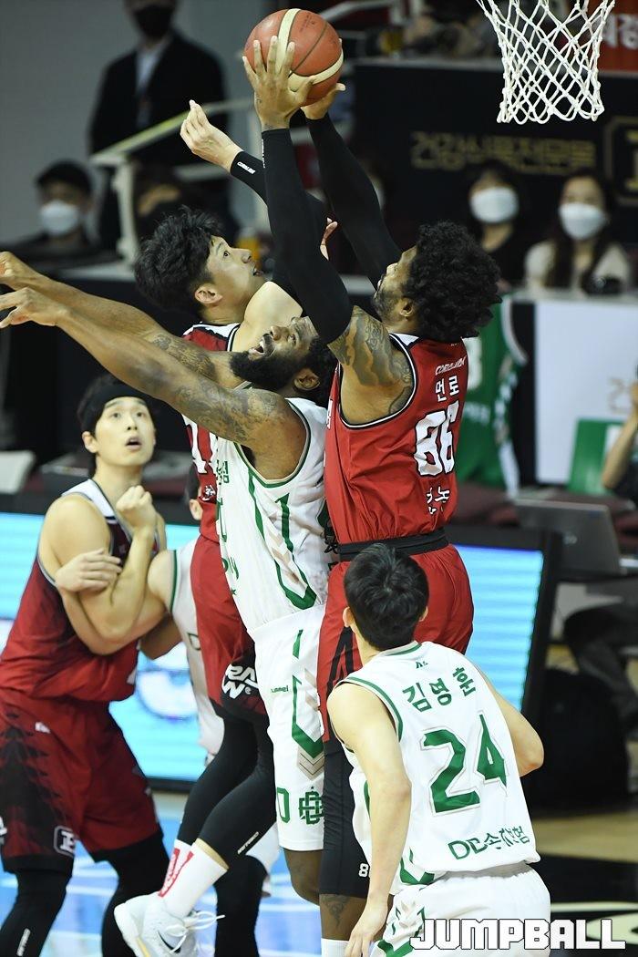 17일 안양실내체육관에서 열린 2021-2022 KGC인삼공사 정관장 프로농구 안양 KGC인삼공사와 원주 DB의 경기, KGC가 93-84로 DB에 승리했다.