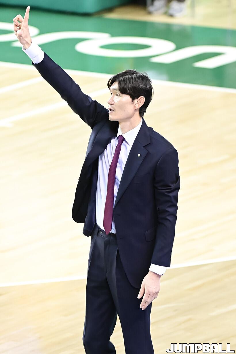 [점프볼=원주/박상혁 기자] 20일 원주 DB 프로미 아레나에서 열린 2025-2026 LG전자 프로농구 원주 DB와 서울 삼성의 경기, DB 김주성 감독이 선수들에게 지시를 하고 있다.