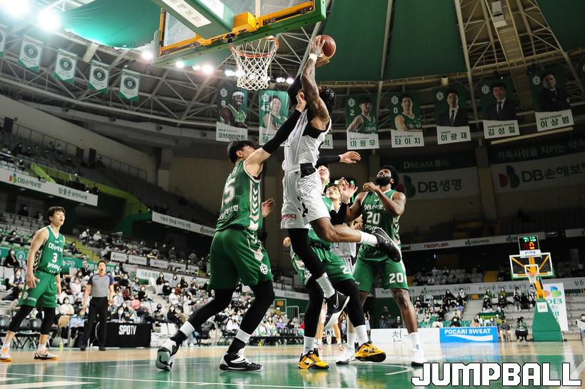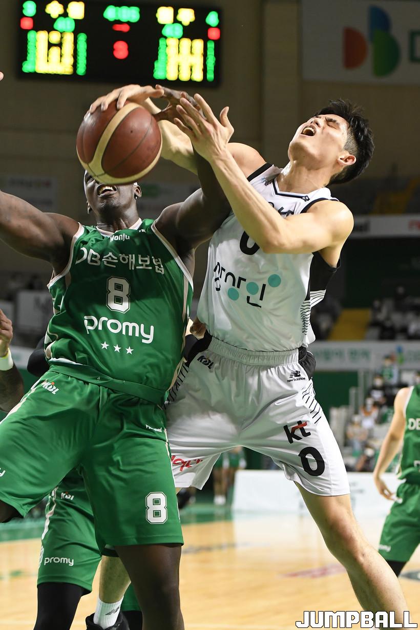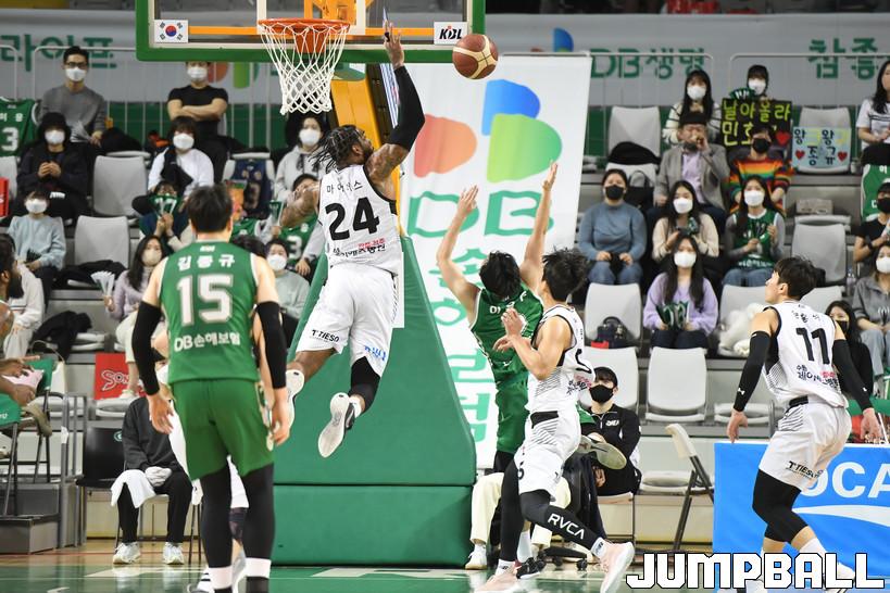 10일 원주종합체육관에서 열린 2021-2022 KGC인삼공사 정관장 프로농구 원주 DB와 수원 KT의 경기, DB가 KT에 75-71로 승리했다. DB와 KT 경기 화보.