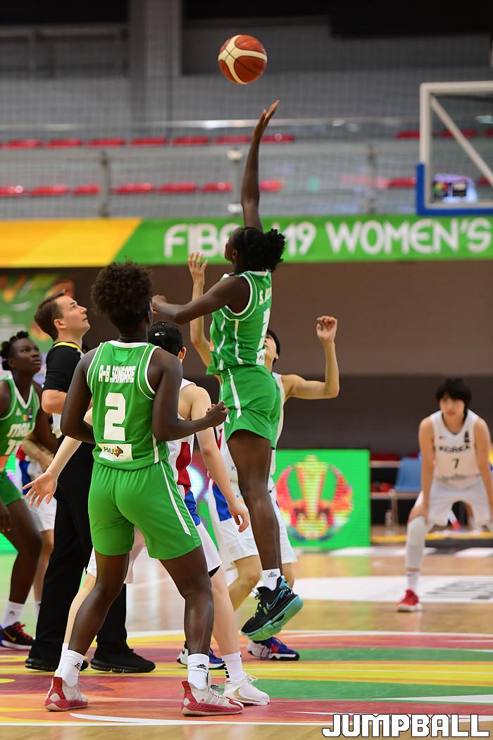 11일 헝가리 데브레첸 호도스 임레 스포츠홀에서 열린 '2021 FIBA U19 여자농구월드컵' 한국과 말리의 16강전 경기, 점프볼로 경기가 시작되었다.