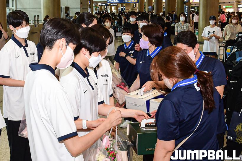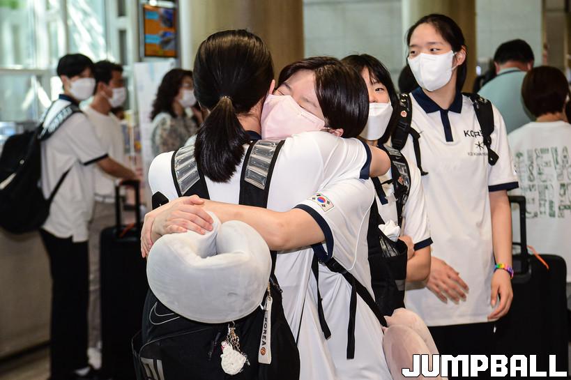 19일 헝가리 데브레첸에서 출발한 U17 여자농구월드컵 한국대표팀은 인천공항 제1터미널로 입국했다. 세계 14위라는 아쉬운 성적표를 받아들고 입국한 대표팀은 긴 여정의 마침표를 찍었다. U17 여자농구대표팀 입국 현장 화보.