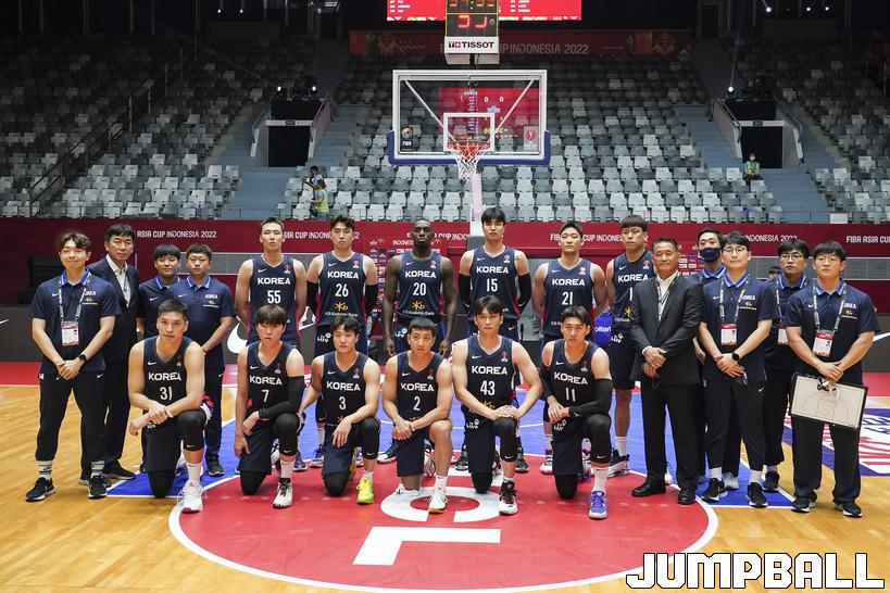 12일 인도네시아 자카르타 이스토라 세네얀에서 열린 FIBA 아시아컵 B조 대한민국과 중국의 경기. 경기에 앞서 대표팀 단체촬영을 진행하고 있다.