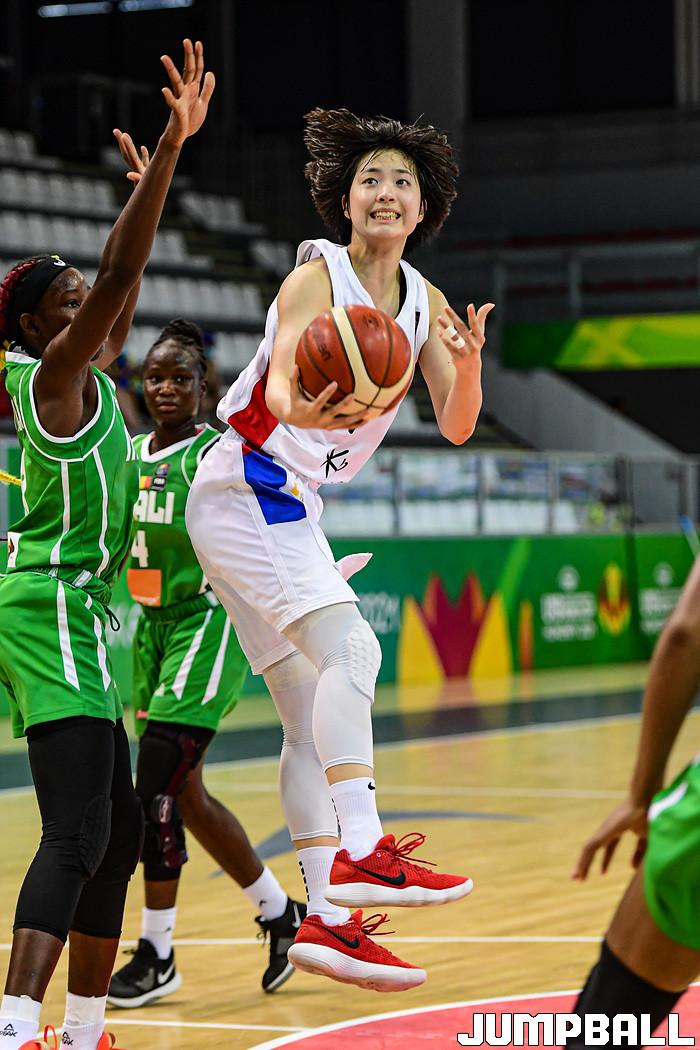 11일 헝가리 데브레첸 호도스 임레 스포츠홀에서 열린 '2021 FIBA U19 여자농구월드컵' 한국과 말리의 16강전 경기, 박소희가 레이업슛을 시도하고 있다.