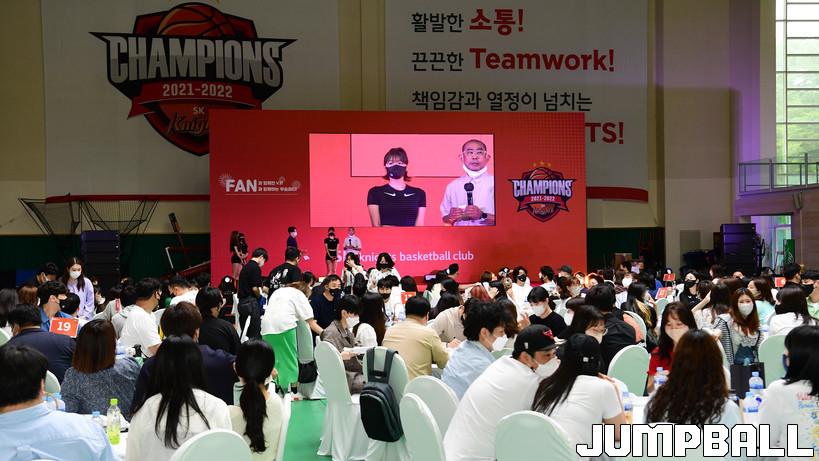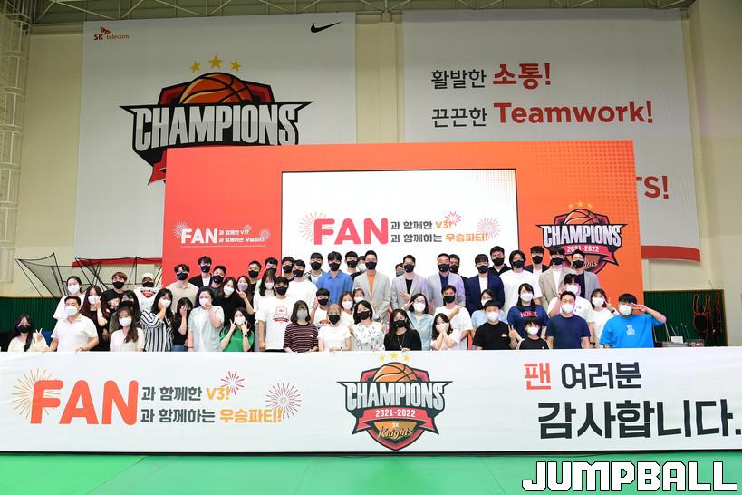 11일 경기도 용인시 양지에 위치한 SK 연습체육관에서 열린 'FAN과 함께 한 V3! FAN과 함께 하는 우승 파티! ' 현장 화보.