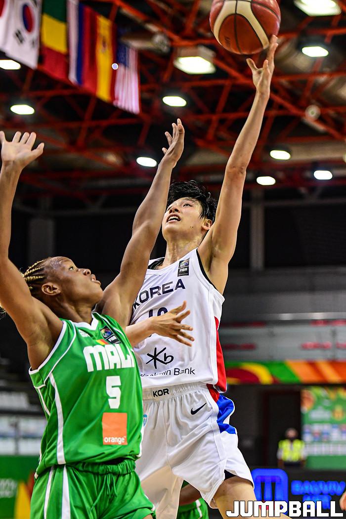 11일 헝가리 데브레첸 호도스 임레 스포츠홀에서 열린 '2021 FIBA U19 여자농구월드컵' 한국과 말리의 16강전 경기, 이해란이 레이업슛을 시도하고 있다.