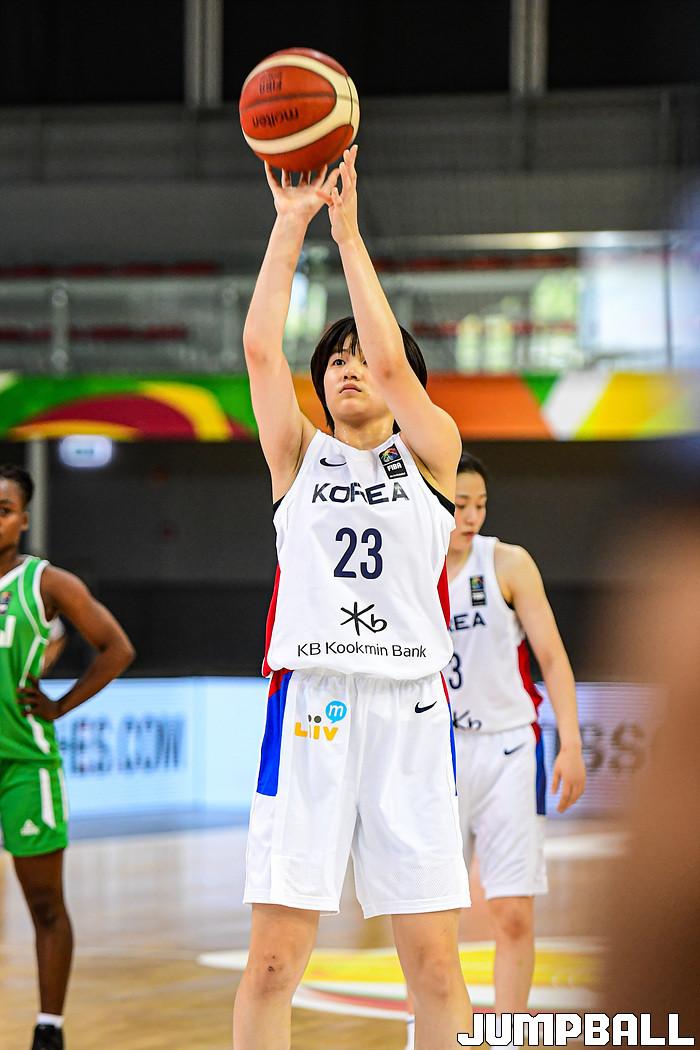 11일 헝가리 데브레첸 호도스 임레 스포츠홀에서 열린 '2021 FIBA U19 여자농구월드컵' 한국과 말리의 16강전 경기, 변소정이 자유투를 시도하고 있다.