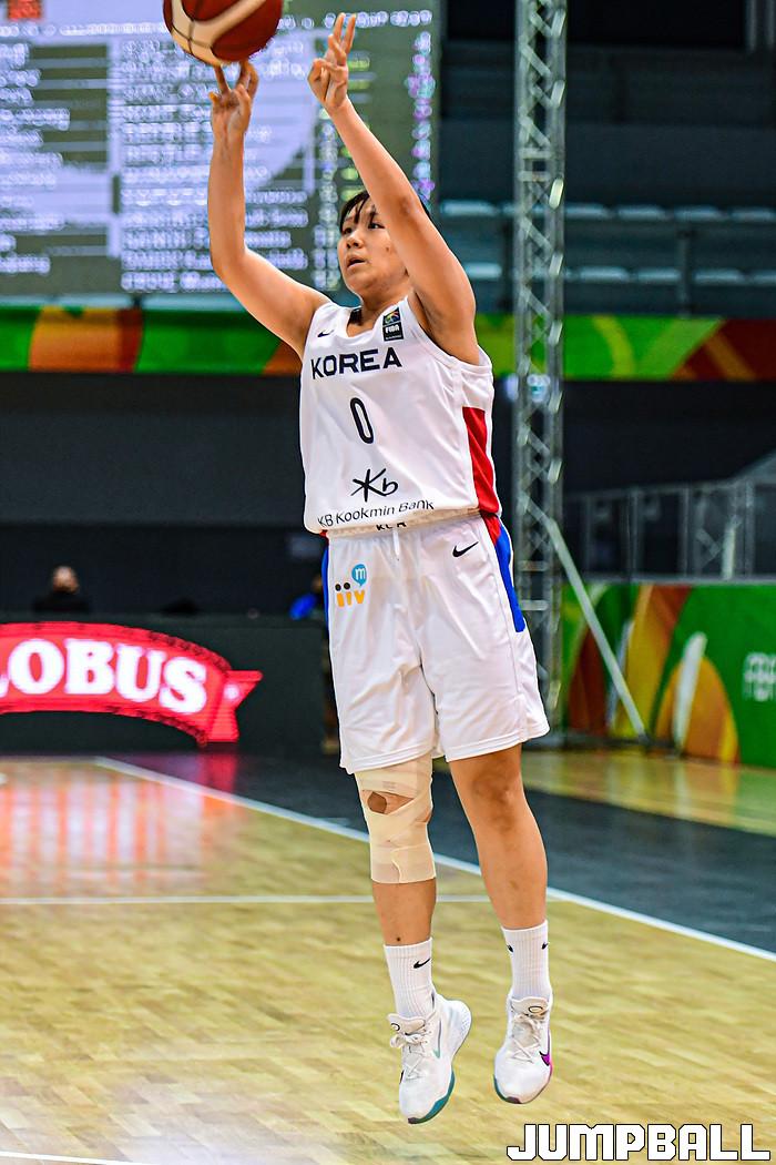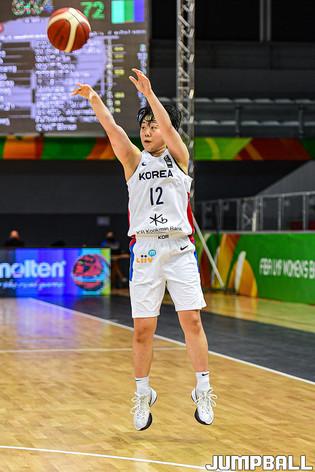11일 헝가리 데브레첸 호도스 임레 스포츠홀에서 열린 '2021 FIBA U19 여자농구월드컵' 한국과 말리의 16강전 경기, 정민지가 3점슛을 시도하고 있다.