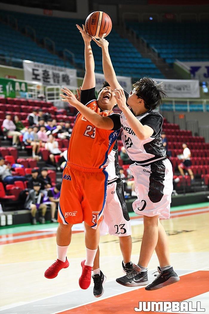 [점프볼=인천/유용우 기자] 9일 인천 삼산체육관에서 열린 2019 KBL 스쿨리그 지역 예선, 전자랜드와 신흥중의 경기 화보