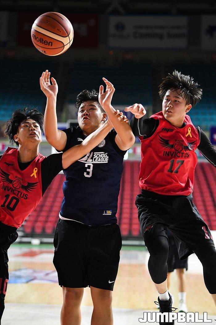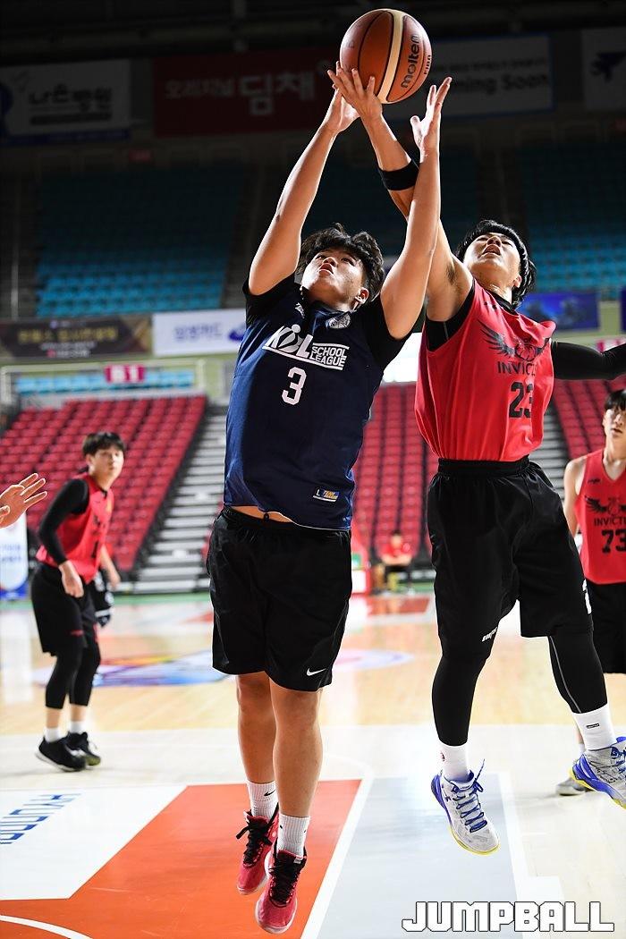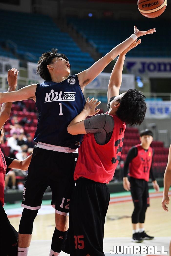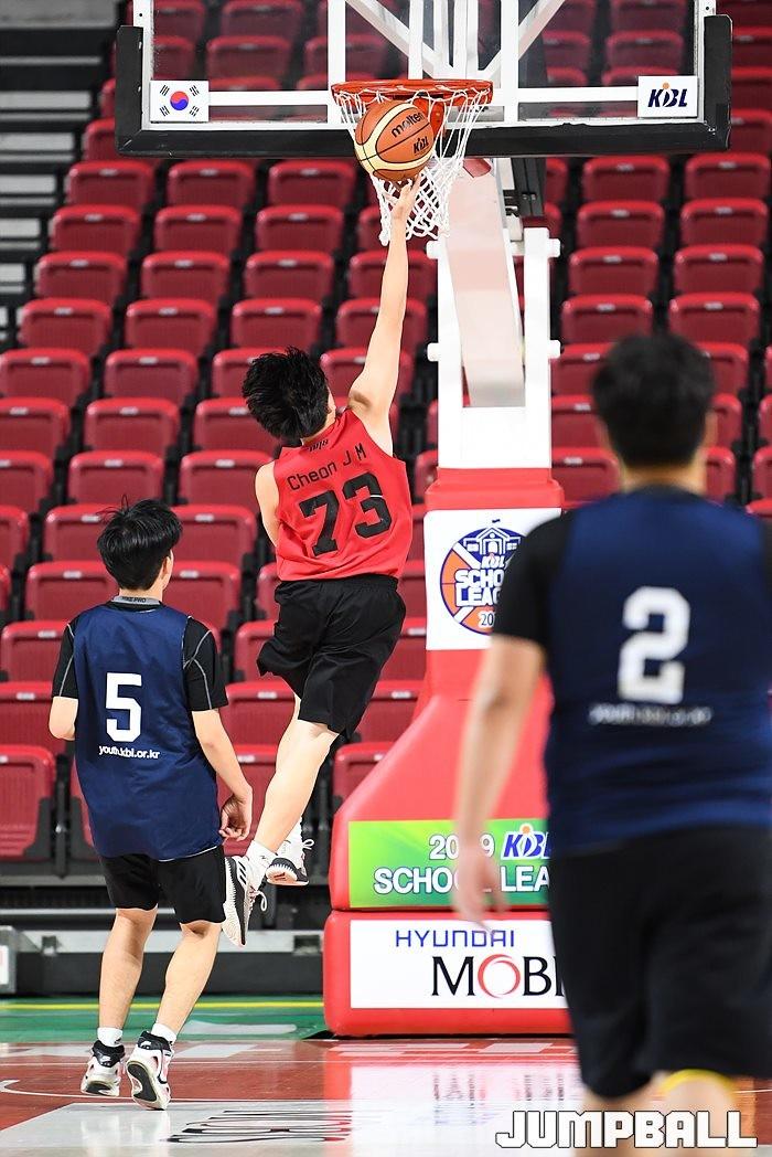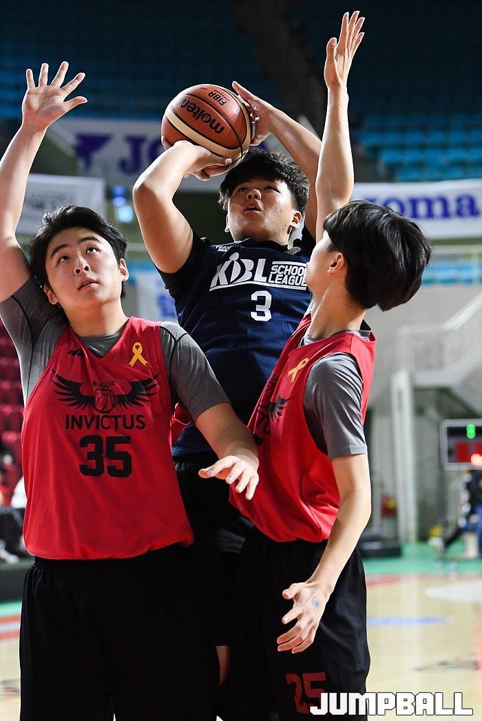 [점프볼=인천/유용우 기자] 9일 인천 삼산체육관에서 열린 2019 KBL 스쿨리그 지역 예선 고등부,문산제일고와 부곡고의 경기 화보