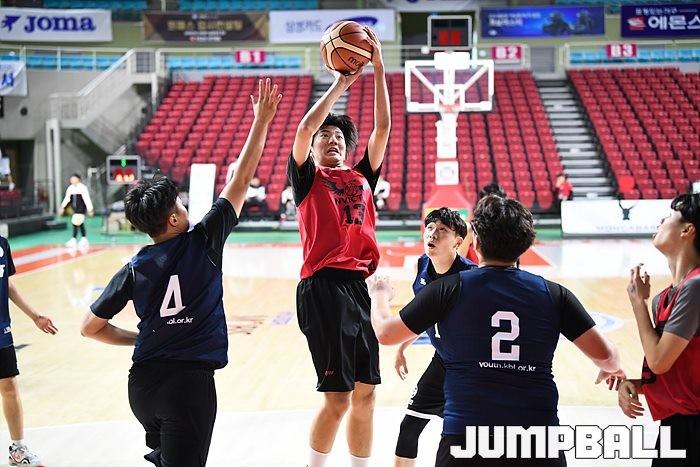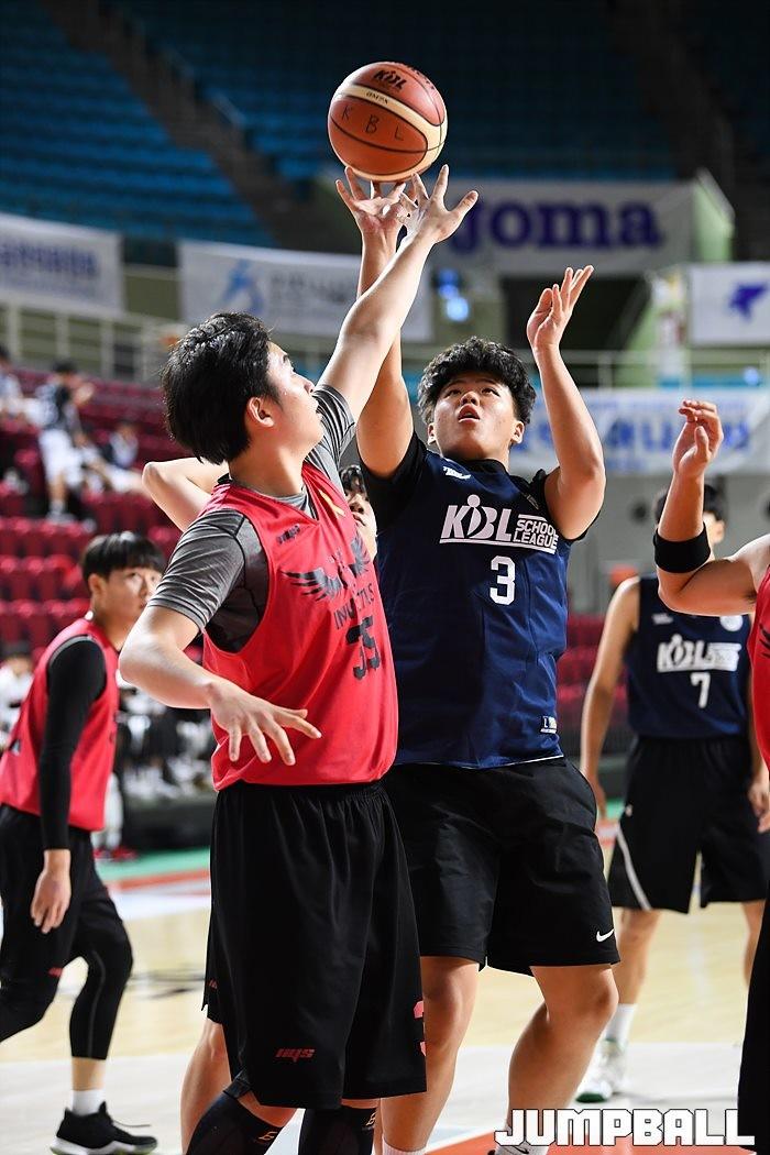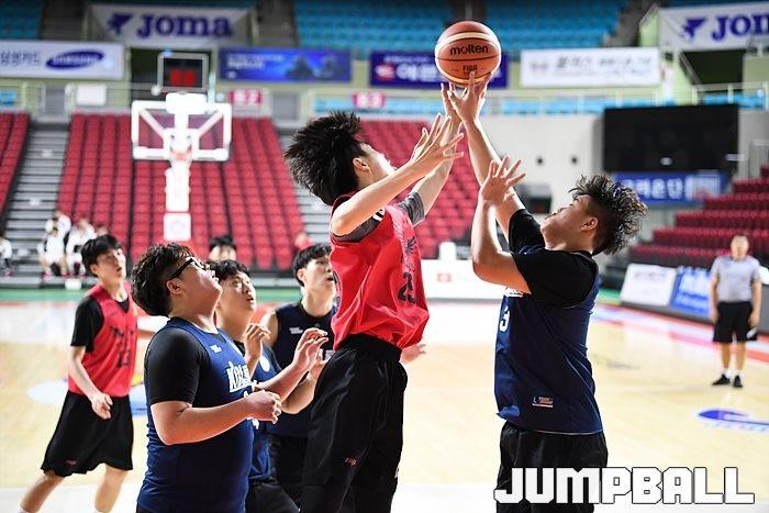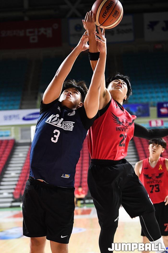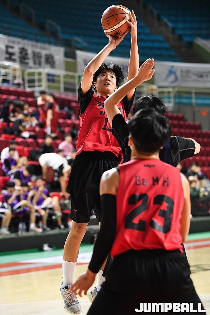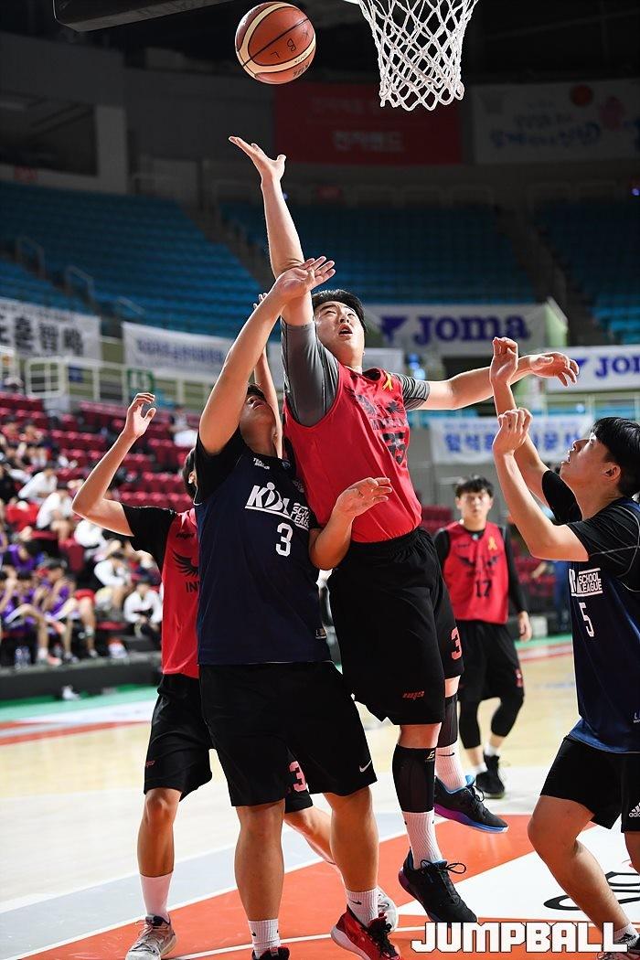[점프볼=인천/유용우 기자] 9일 인천 삼산체육관에서 열린 2019 KBL 스쿨리그 지역 예선 고등부,문산제일고와 부곡고의 경기 화보