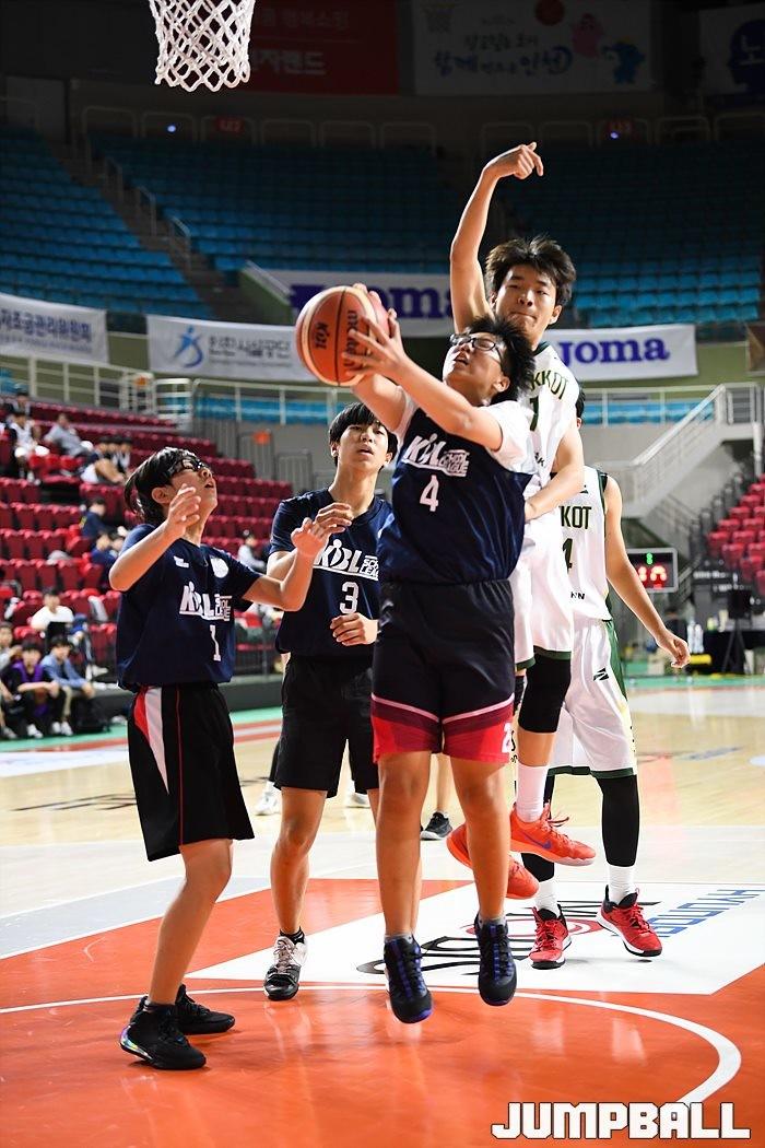 [점프볼=인천/유용우 기자] 9일 인천 삼산체육관에서 열린 2019 KBL 스쿨리그 지역 예선 중등부, 계산중과 대전글꽃중의 경기 화보