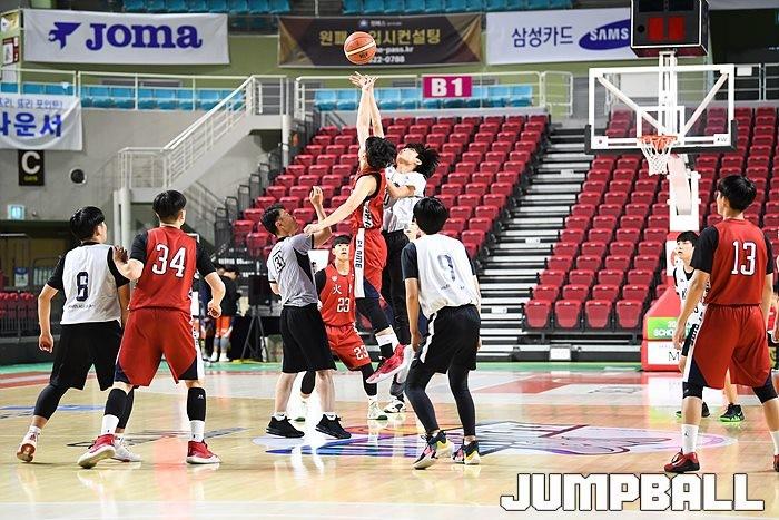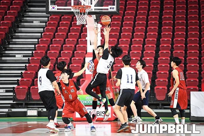 [점프볼=인천/유용우 기자] 9일 인천 삼산체육관에서 열린 2019 KBL 스쿨리그 지역 예선 고등부,삼산고와 소래고의 경기 화보