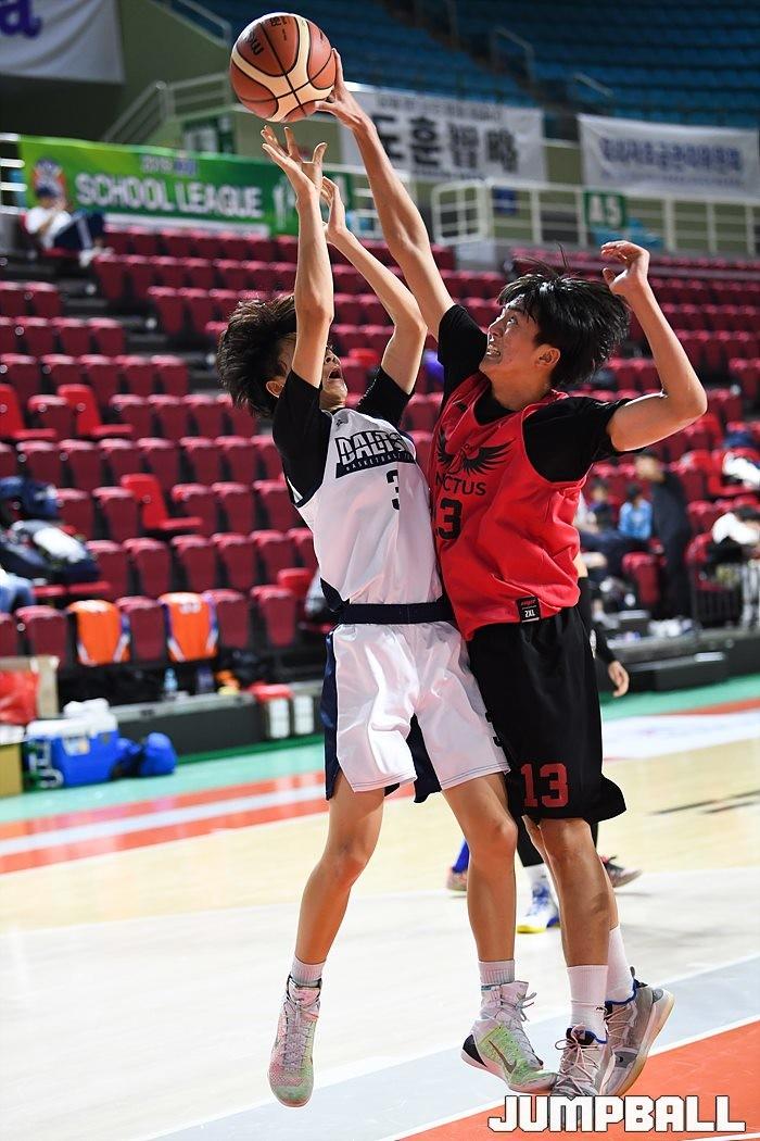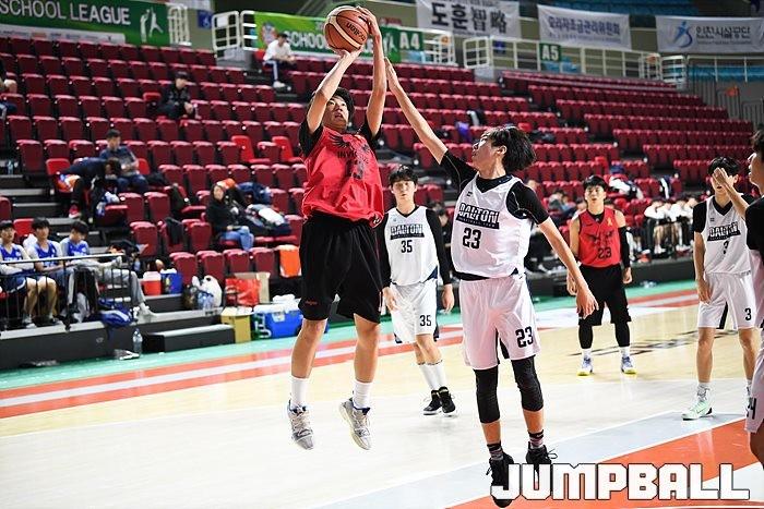 [점프볼=인천/유용우 기자] 9일 인천 삼산체육관에서 열린 2019 KBL 스쿨리그 지역 예선 고등부, 청라달튼국제학교와 부곡고의 경기 화보