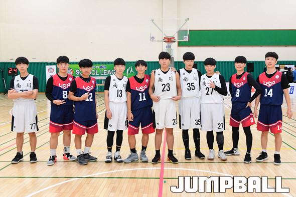 [점프볼=부산/박상혁 기자] 12일 부산사직체육관 보조경기장에서 열린 '2019 KBL 스쿨리그' 중등부 1조 남천중과 해연중의 경기, 남천중이 해연중에 22대 20으로 승리하였다. 남천중과 해연중 경기 화보.