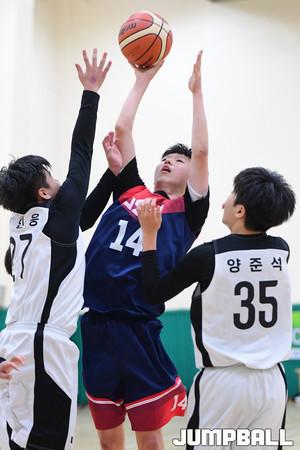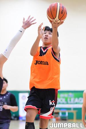 [점프볼=부산/박상혁 기자] 12일 부산사직체육관 보조경기장에서 열린 '2019 KBL 스쿨리그' 중등부 2조 KT와 구남중의 경기, KT 문준호가 레이업슛을 시도하고 있다.