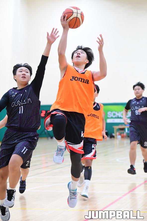 [점프볼=부산/박상혁 기자] 12일 부산사직체육관 보조경기장에서 열린 '2019 KBL 스쿨리그' 중등부 2조 KT와 구남중의 경기, KT 김륜석이 레이업슛을 시도하고 있다.