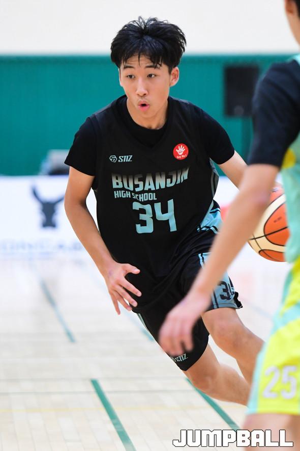 [점프볼=부산/박상혁 기자] 12일 부산사직체육관 보조경기장에서 열린 '2019 KBL 스쿨리그' 고등부 1조 부산관광고와 부산진고의 경기, 부산진고 박현성이 돌파를 시도하고 있다.