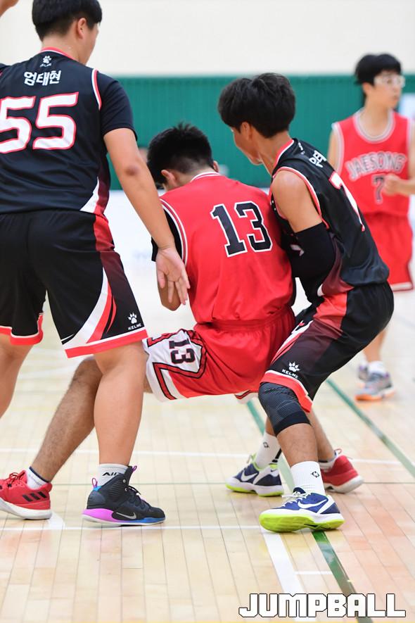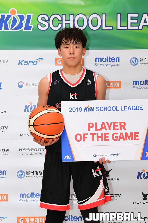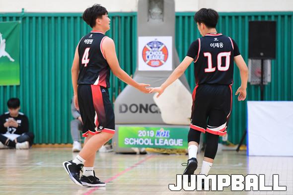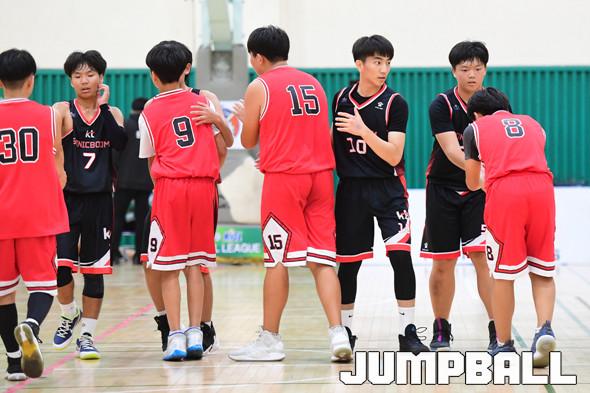 [점프볼=부산/박상혁 기자] 12일 부산사직체육관 보조경기장에서 열린 '2019 KBL 스쿨리그' 중등부 2조 KT와 재송중의 경기, KT가 재송중에 43대 23으로 승리하였다. KT와 재송중 경기 화보.