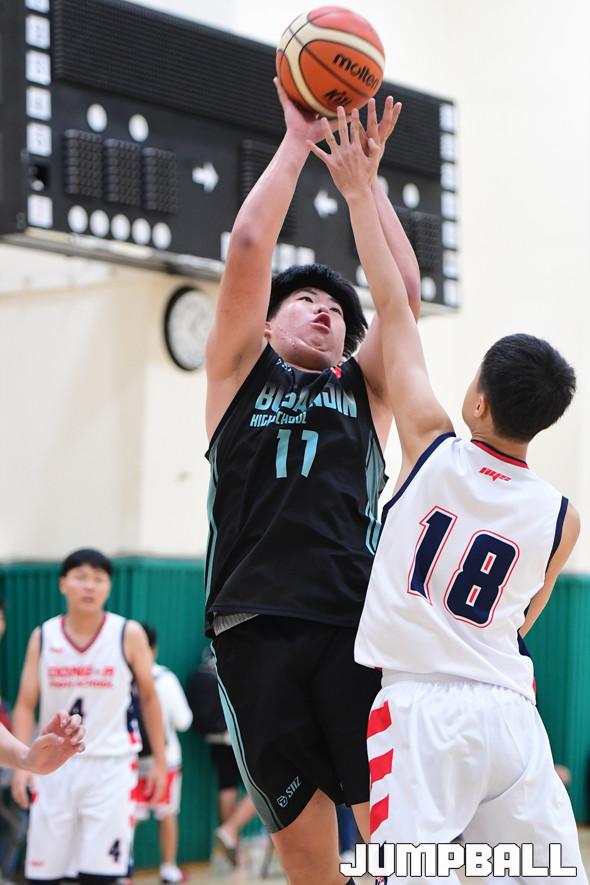 [점프볼=부산/박상혁 기자] 12일 부산사직체육관 보조경기장에서 열린 '2019 KBL 스쿨리그' 고등부 부산진고와 동아고의 경기, 동아고가 부산진고에 21대 20으로 승리하였다. 동아고와 부산진고 경기 화보