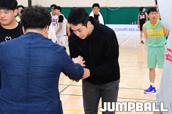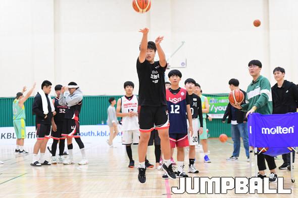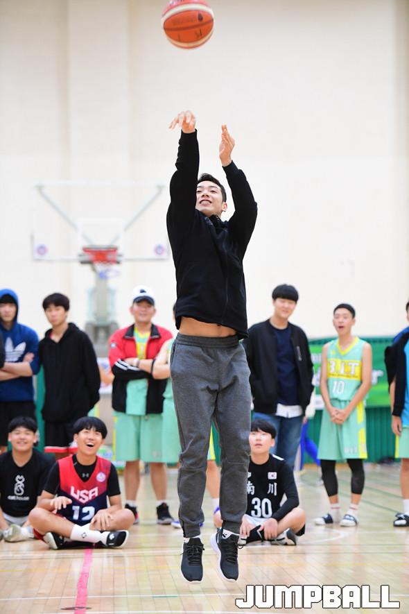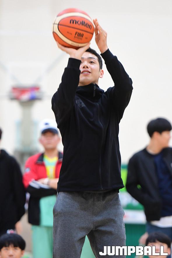 [점프볼=부산/박상혁 기자] 12일 부산사직체육관 보조경기장에서 '2019 KBL 스쿨리그' 부산KT 정진욱과 함께 슈팅 이벤트가 열렸다. 부산KT 정진욱과 함께한 슈팅 이벤트 화보.