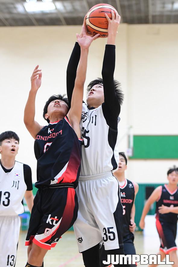 [점프볼=부산/박상혁 기자] 12일 부산사직체육관 보조경기장에서 열린 '2019 KBL 스쿨리그' KT와 남천중의 중등부 결승전 경기, KT가 남천중에 38대 26으로 승리하였다. KT와 남천중 경기 화보.