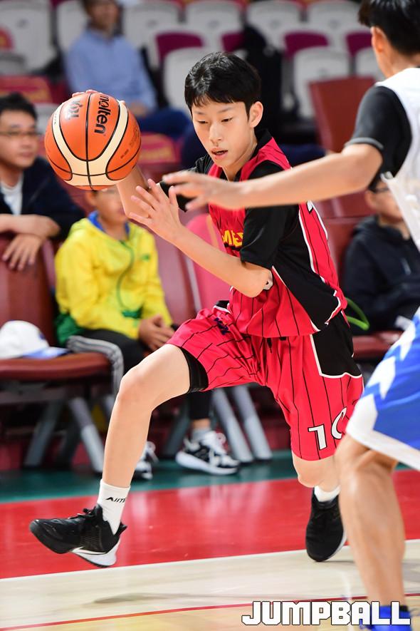 [점프볼=창원/박상혁 기자] 20일 창원실내체육관에서 '2019 KBL 스쿨리그' 창원지역 예선 경기가 열렸다. 중등부 LG 노혁주가 돌파를 시도하고 있다.